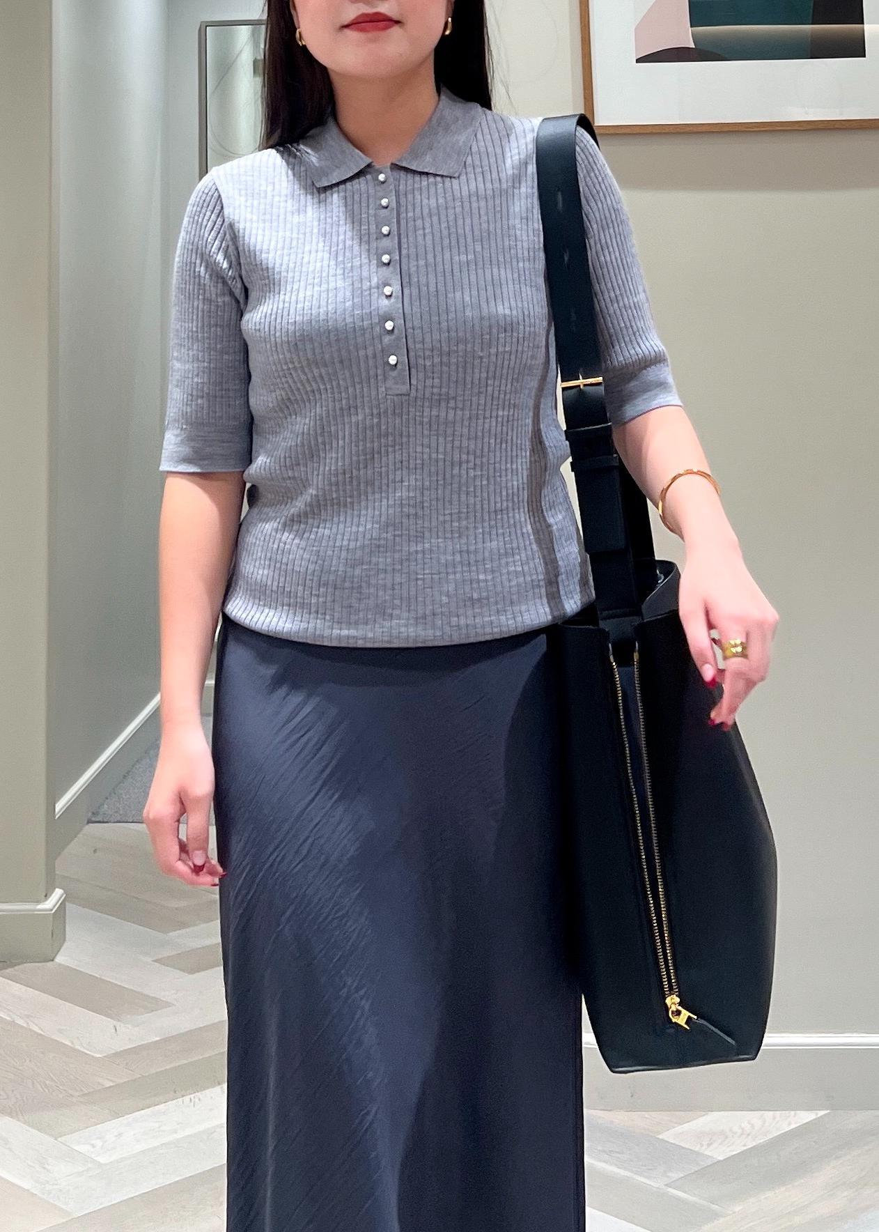 ROPÉパール釦ポロニット/イージーケアグレー / F¥19,800レビュー体にフィットしますが、あまりラインを拾わず
