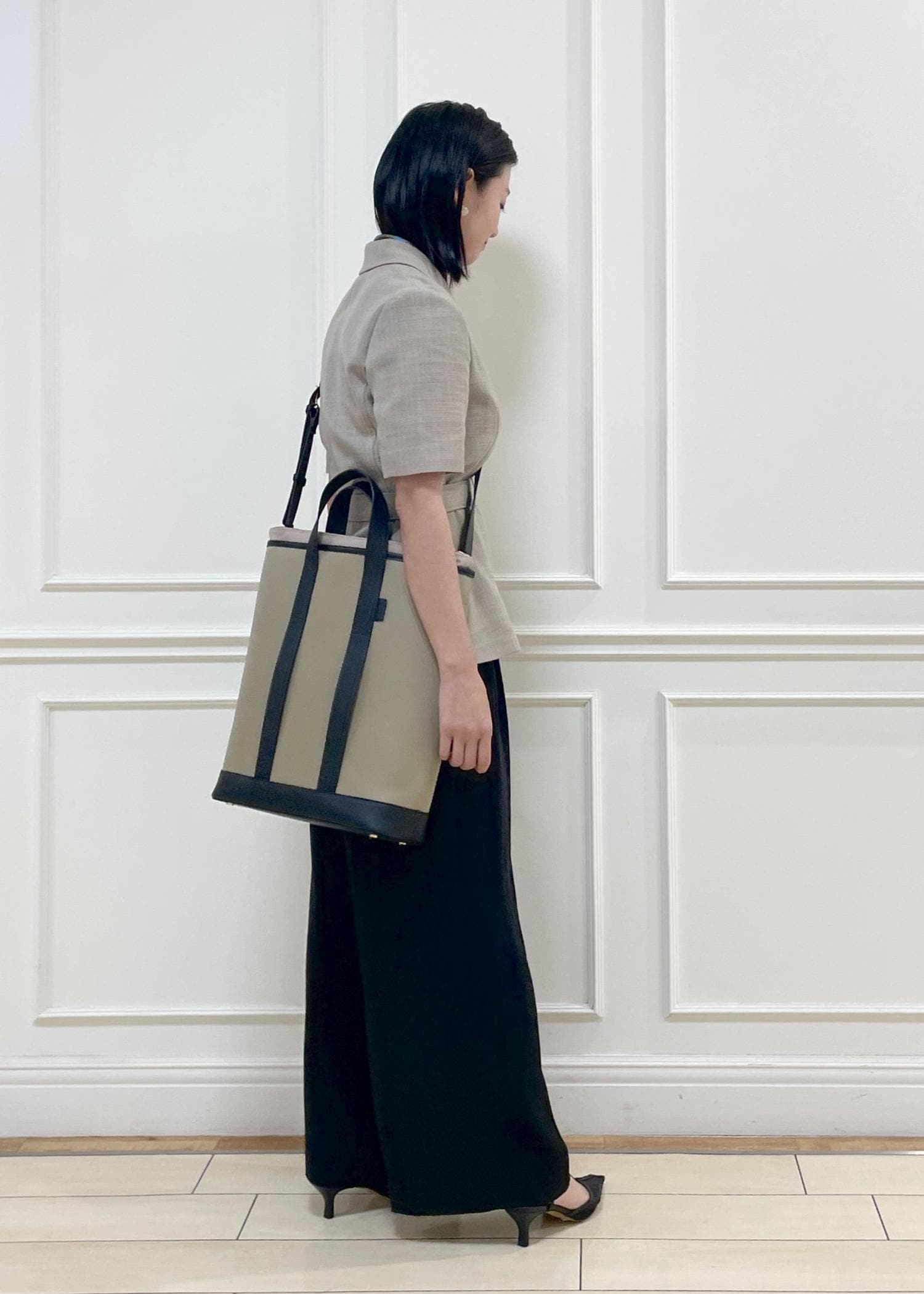 A4サイズが入るバッグをチョイスして、きちんと感もある通勤やデイリーに使えるスタイルにしてみました♪