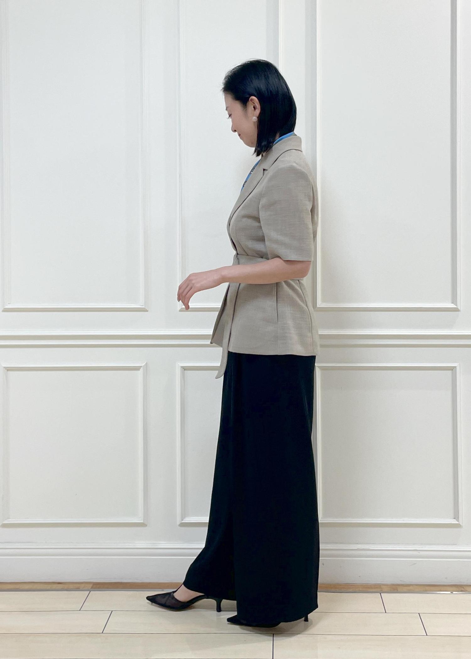 オーバーサイズも好みですが、美ラインを重視してジャストサイズをセレクトしました。