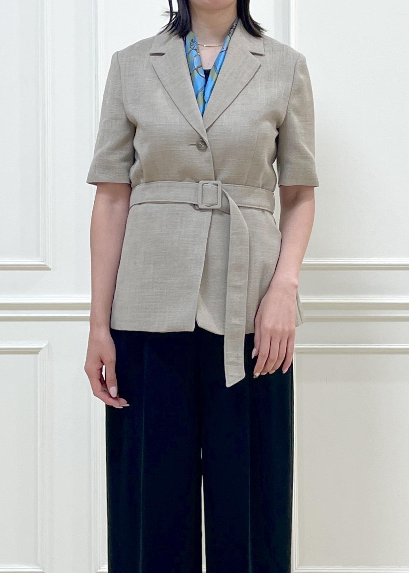 アウトレットROPÉリネンライク ベルテッドジャケット/セットアップ対応ベージュ / 36¥20,900レビューウエストをマークできる共布ベルト付きで、羽織るだけでスタイルアップが叶うジャケット。