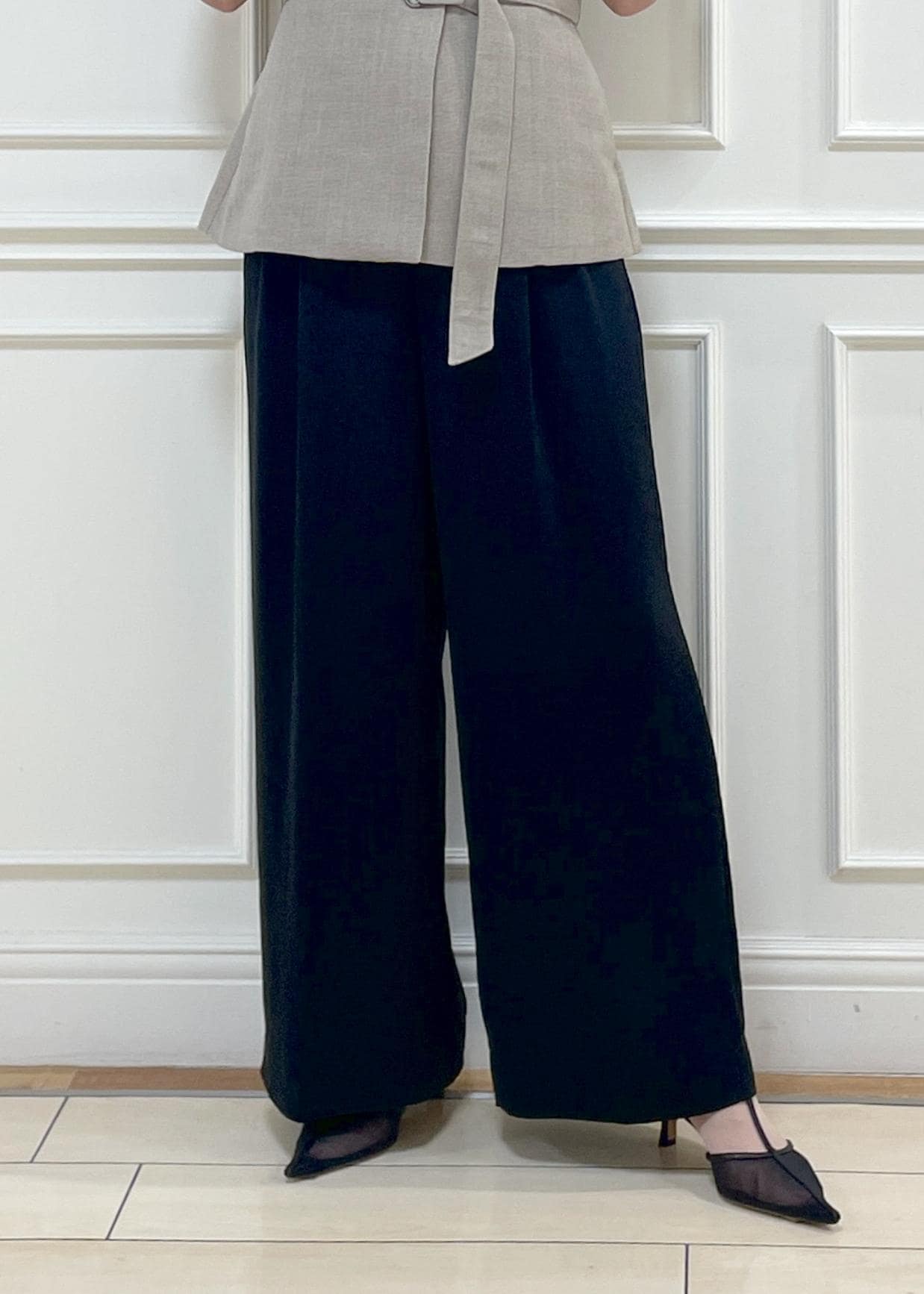 ROPÉ【洗える・カセット服・新色追加】バックサテンイージーワイドパンツ/お仕事・通勤・セットアップ対応ブラック / 36¥27,500レビューサイズ感は通常サイズで丁度良かったです。