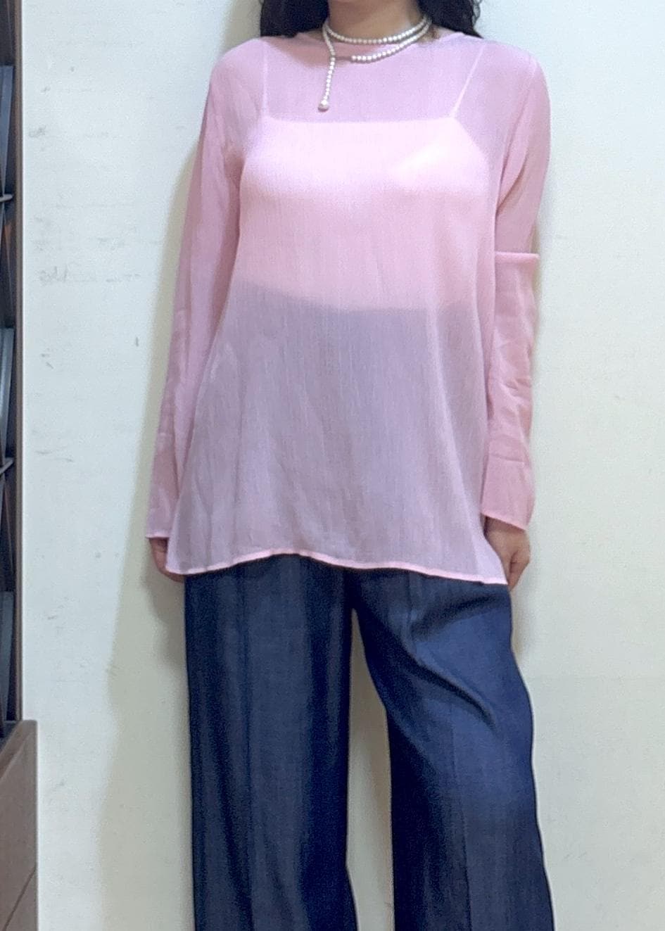 ROPÉ【洗える・前後2WAY】楊柳プルオーバー シアーブラウス【WEB・一部店舗限定】ピンク / F¥17,600レビュー身長152cm Fサイズ着用