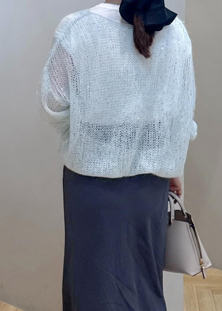 SALON adam et ropéシアーモヘアスパンコールプルオーバーサックス / F¥16,500レビューざっくりとした網目でゆるっと着れるシルエットがとてもオシャレに見えます。