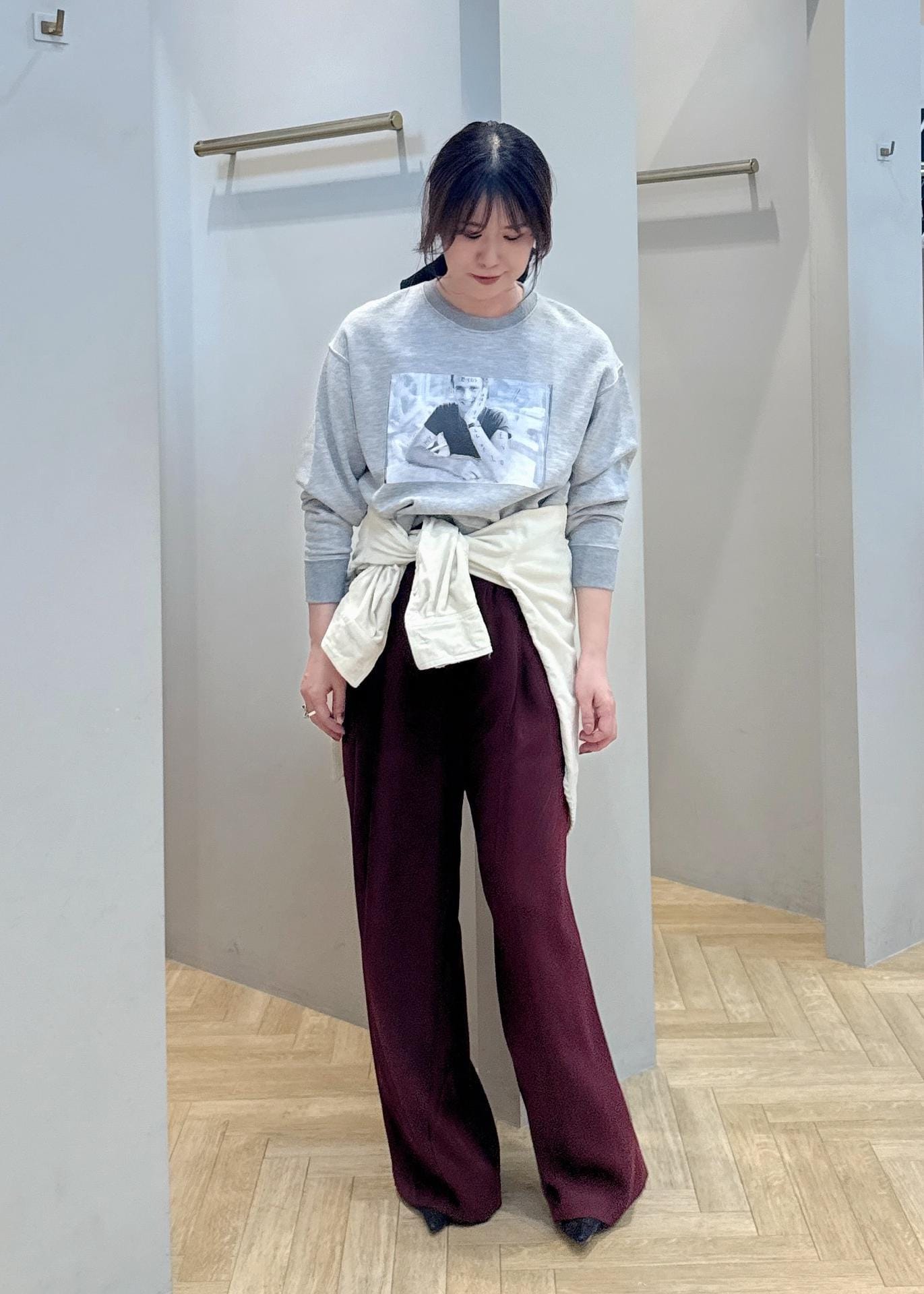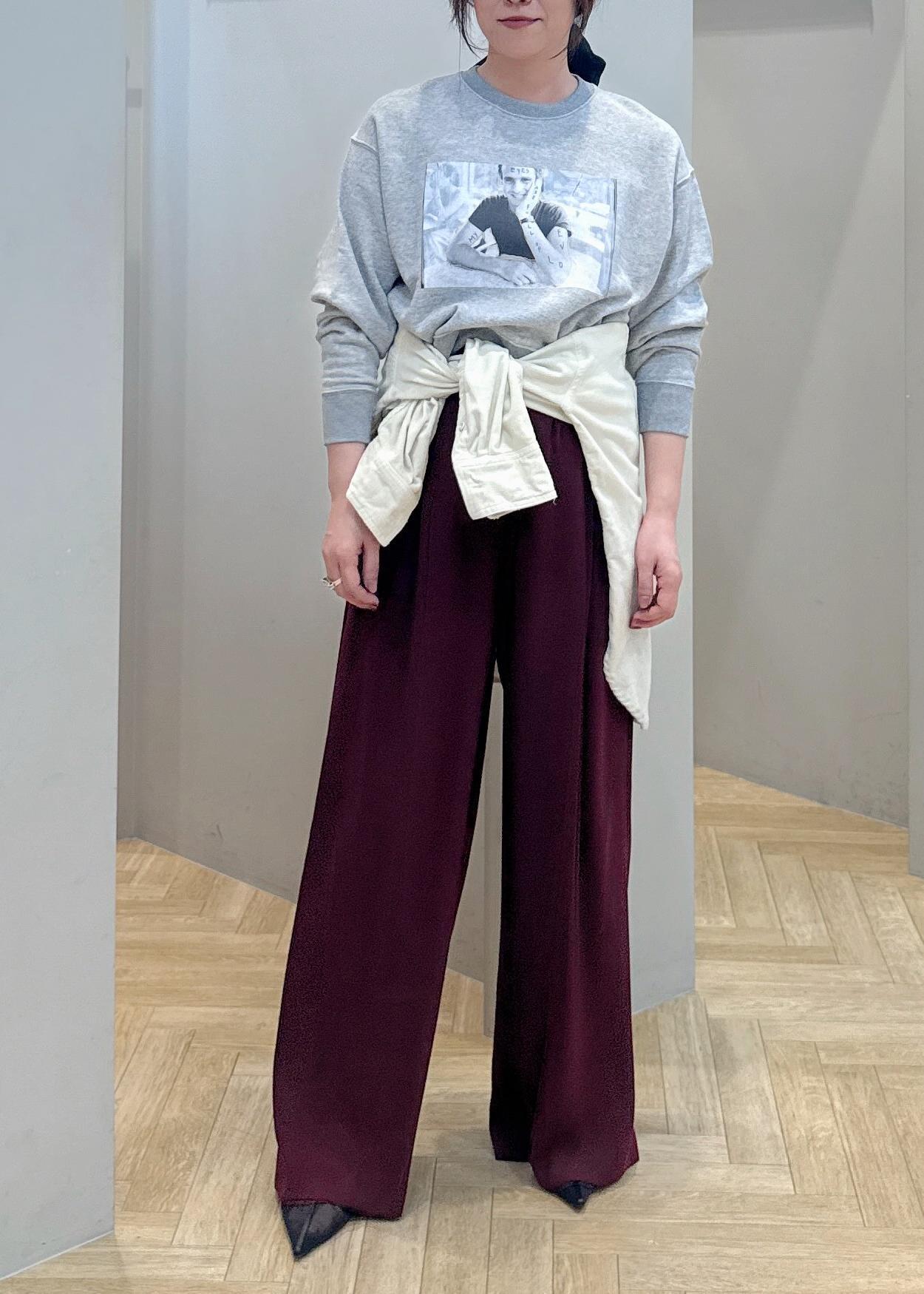 さらっとしていて動くと揺れるのでワイドパンツでも不思議と女性らしさがあります。