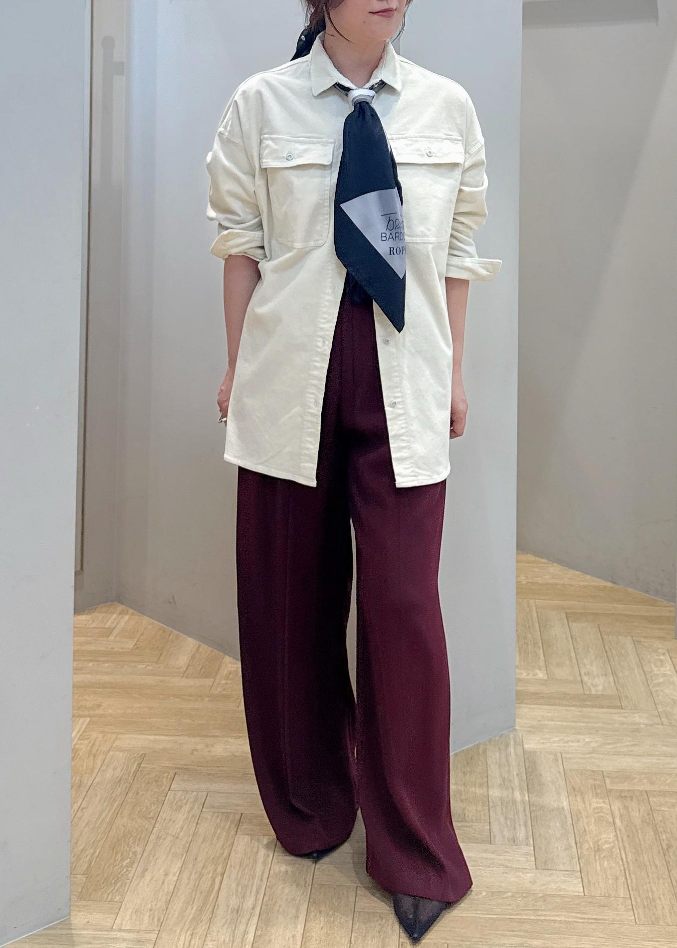 さらっとしていて動くと揺れるのでワイドパンツでも不思議と女性らしさがあります。
