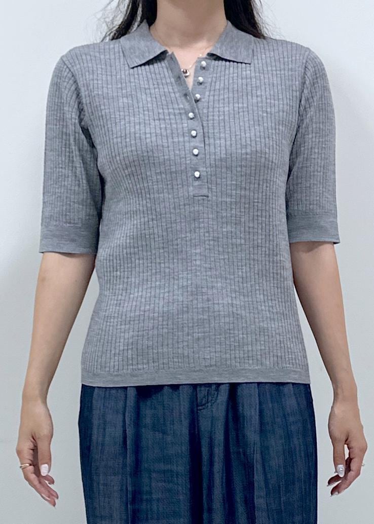 着丈は身長162cmでヒップにかかる長さで、パールボタンのクラシカルなポロ衿なので、きちんと感もあり女性らしいデザインです。