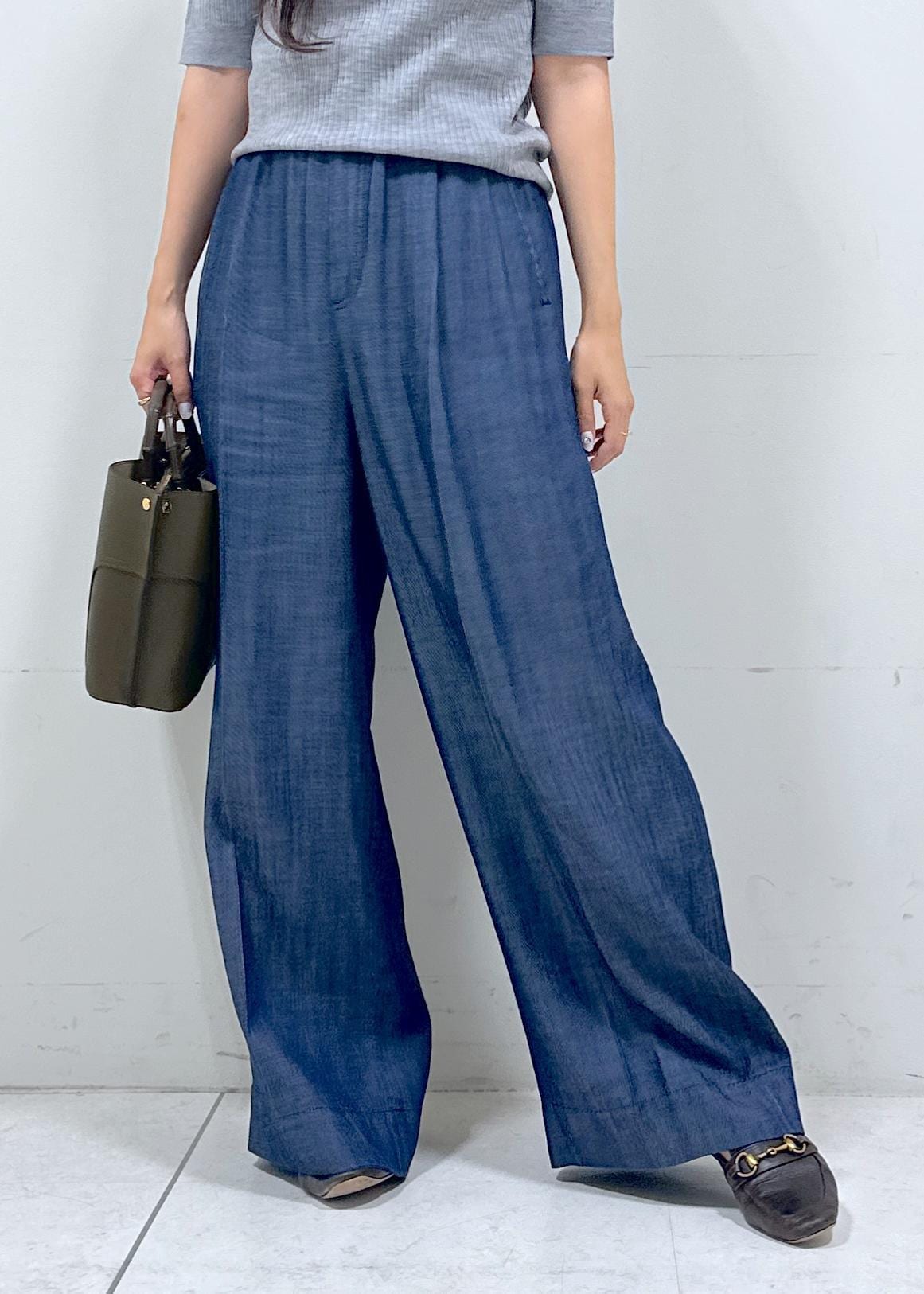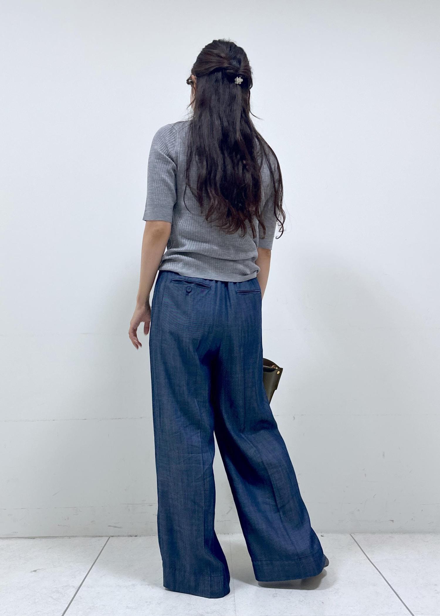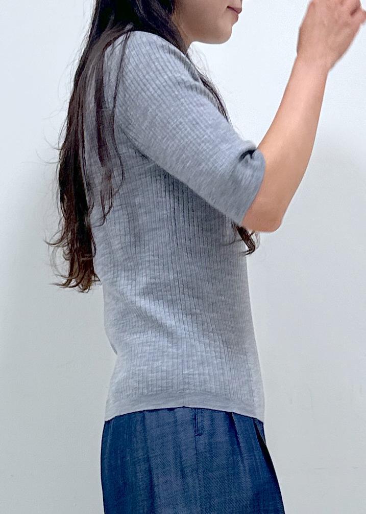 サラとした柔らかい肌触りと緩めのリブがラインをひろいすぎず、楽にスッキリとした美シルエットです。