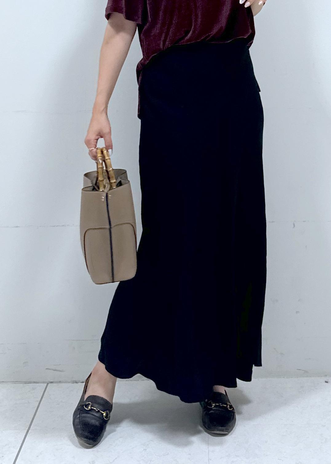 腰回りがすっきりとしたマーメイドシルエットで、ウエストが後ろゴムなので楽に着ていただけます◎ -