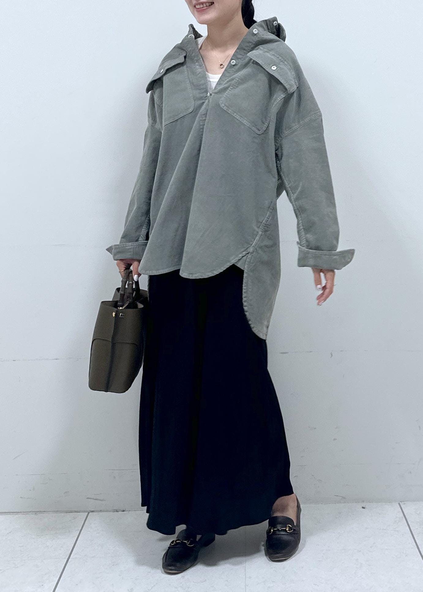 ROPÉ SELECT【Healthy denim(ヘルシーデニム)】一部別注Almondコーデュロイビッグシャツ/イージーケアグレー / M¥20,900レビュー身長162㎝でMサイズ着用。