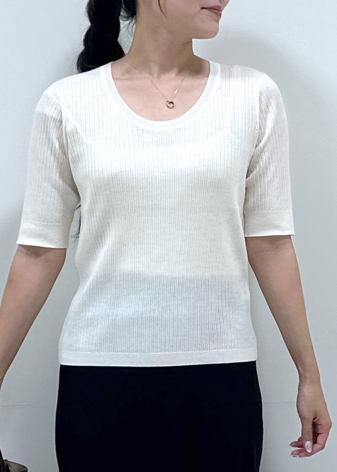 ROPÉワイドリブラウンドネック スーパーメリノウール ニット/イージーケアオフホワイト / F¥8,250レビューサラとした柔らかい肌触りと緩めのリブがラインをひろいすぎず、楽にスッキリとした美シルエットです。