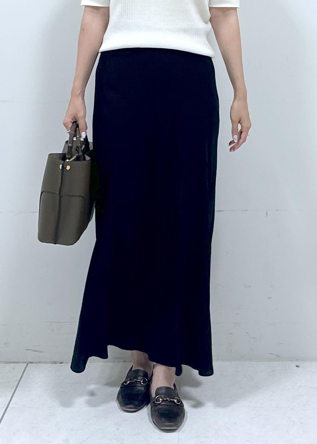 腰回りがすっきりとしたマーメイドシルエットで、ウエストが後ろゴムなので楽に着ていただけます◎ -