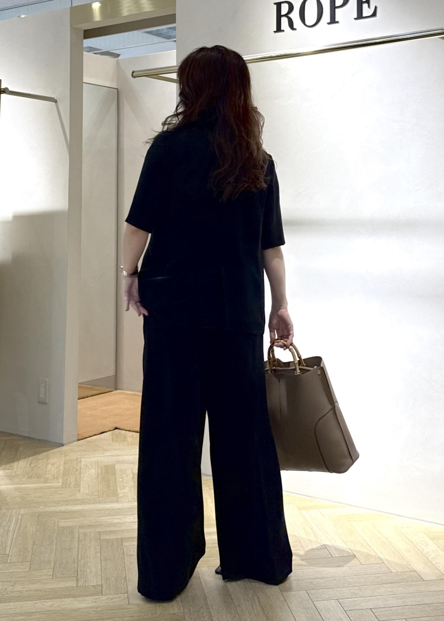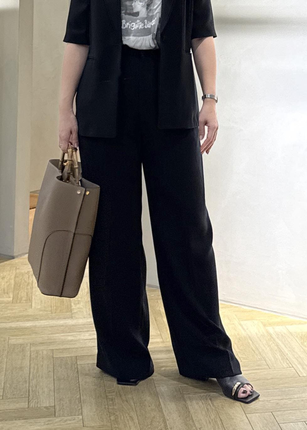 ROPÉ【洗える・カセット服】ライトトリアセイージーワイドパンツ/お仕事・通勤・セットアップ対応ブラック / 38¥25,300レビュー38サイズを履いています。