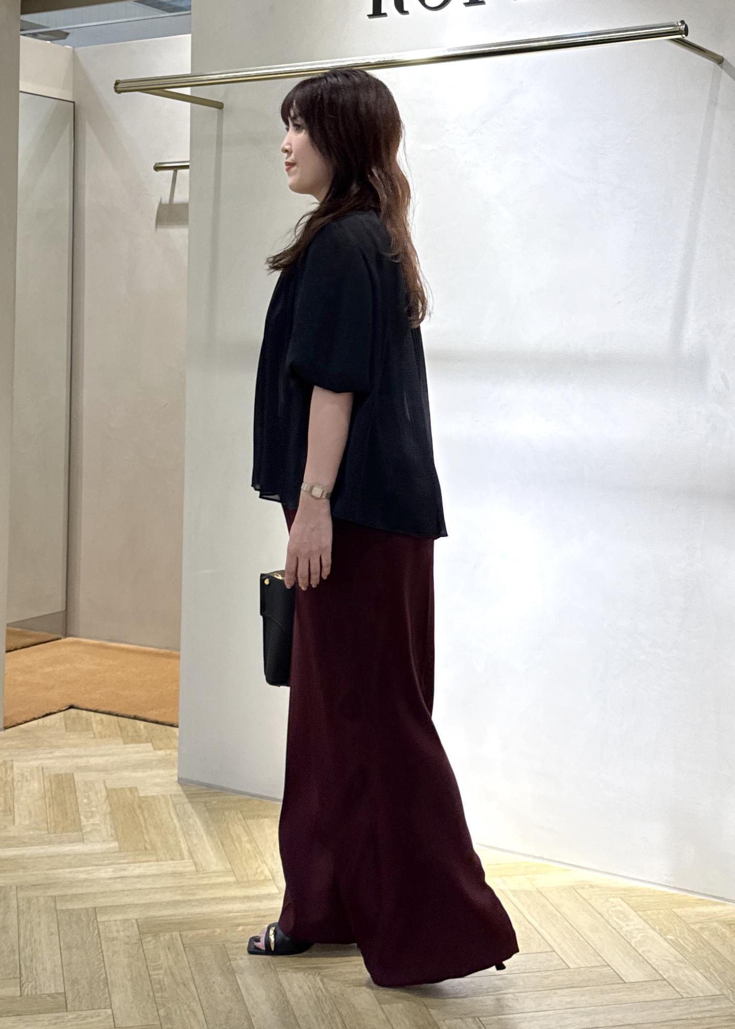 全体的にふわっとした広がりのあるラインなので体型、身長によってはボリュームのある見え方になりそうかなと私は思いましたのでボトムとのバランスや前だけをインするなどスッキリ見えるアレンジ、オススメです。
