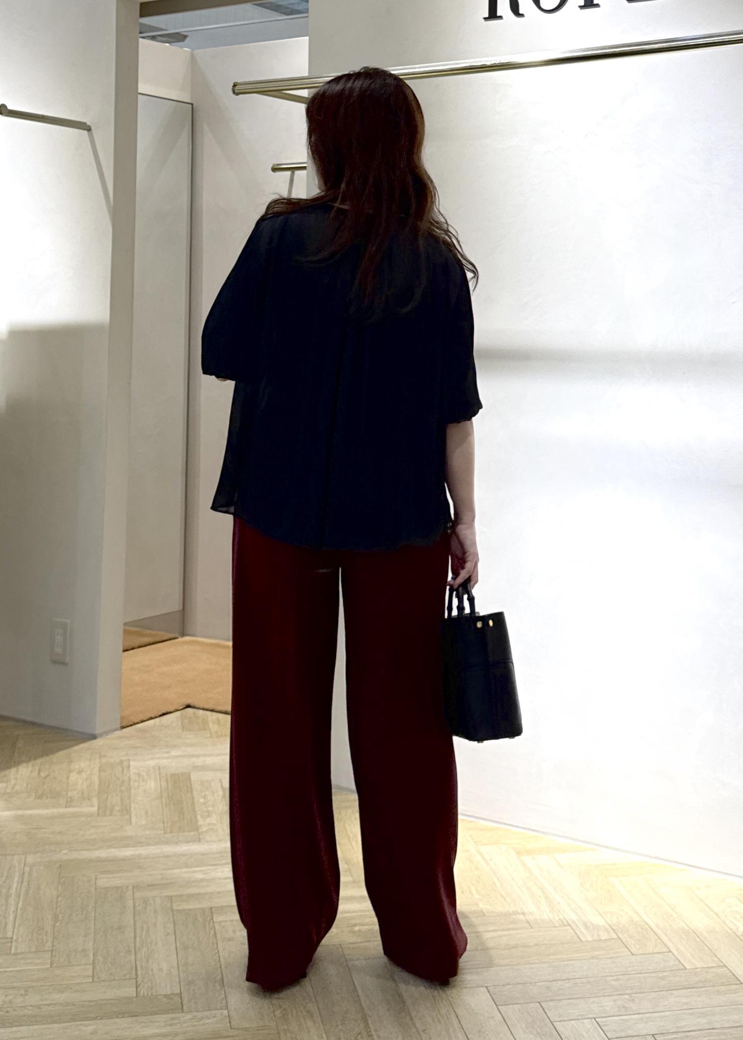 ROPÉ【洗える・カセット服】ライトトリアセイージーワイドパンツ/お仕事・通勤・セットアップ対応ワイン / 38¥25,300レビュー38サイズを履いています。