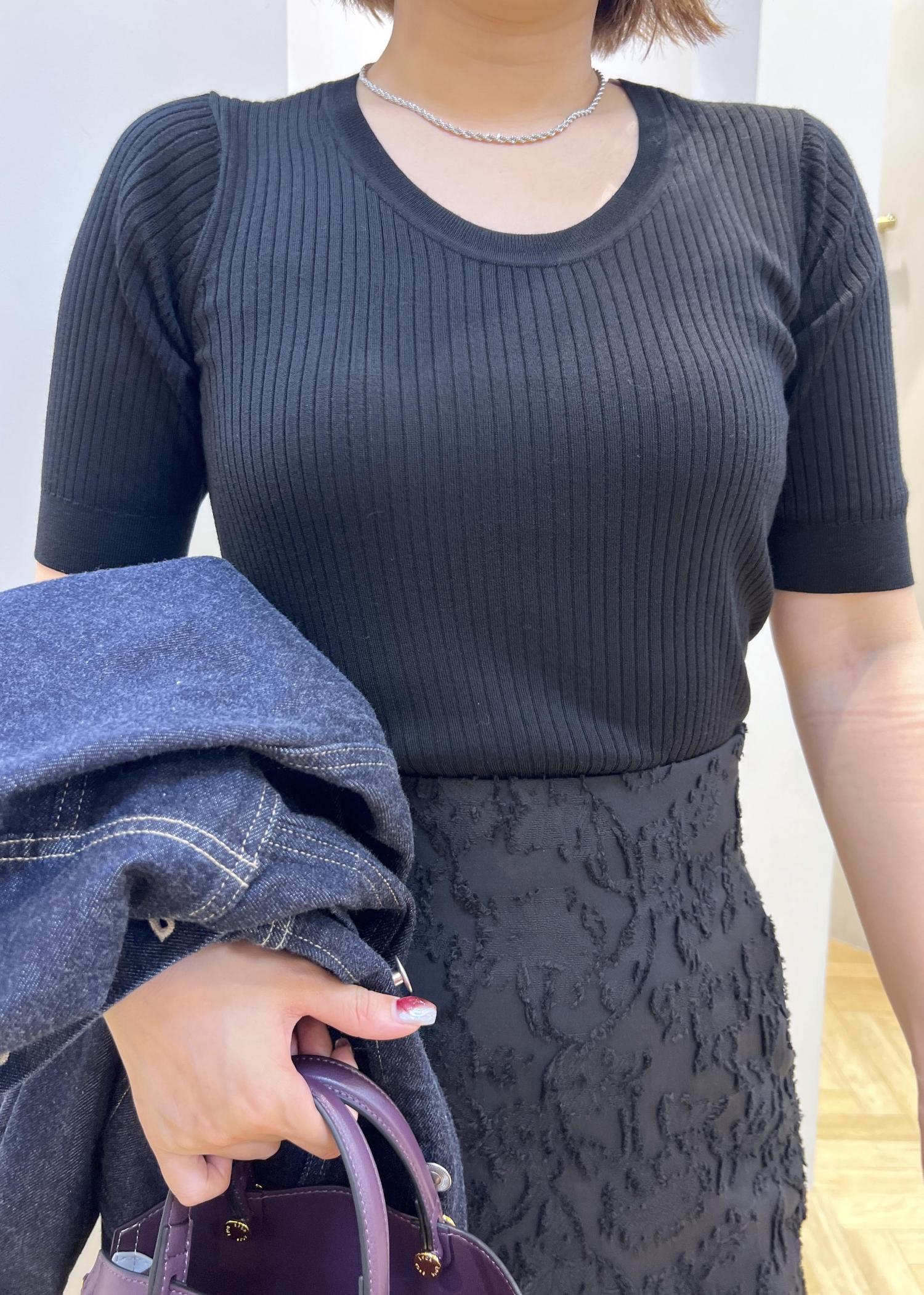 ROPÉワイドリブラウンドネック スーパーメリノウール ニット/イージーケアブラック / F¥8,250レビューリブニットですが伸縮性があるので