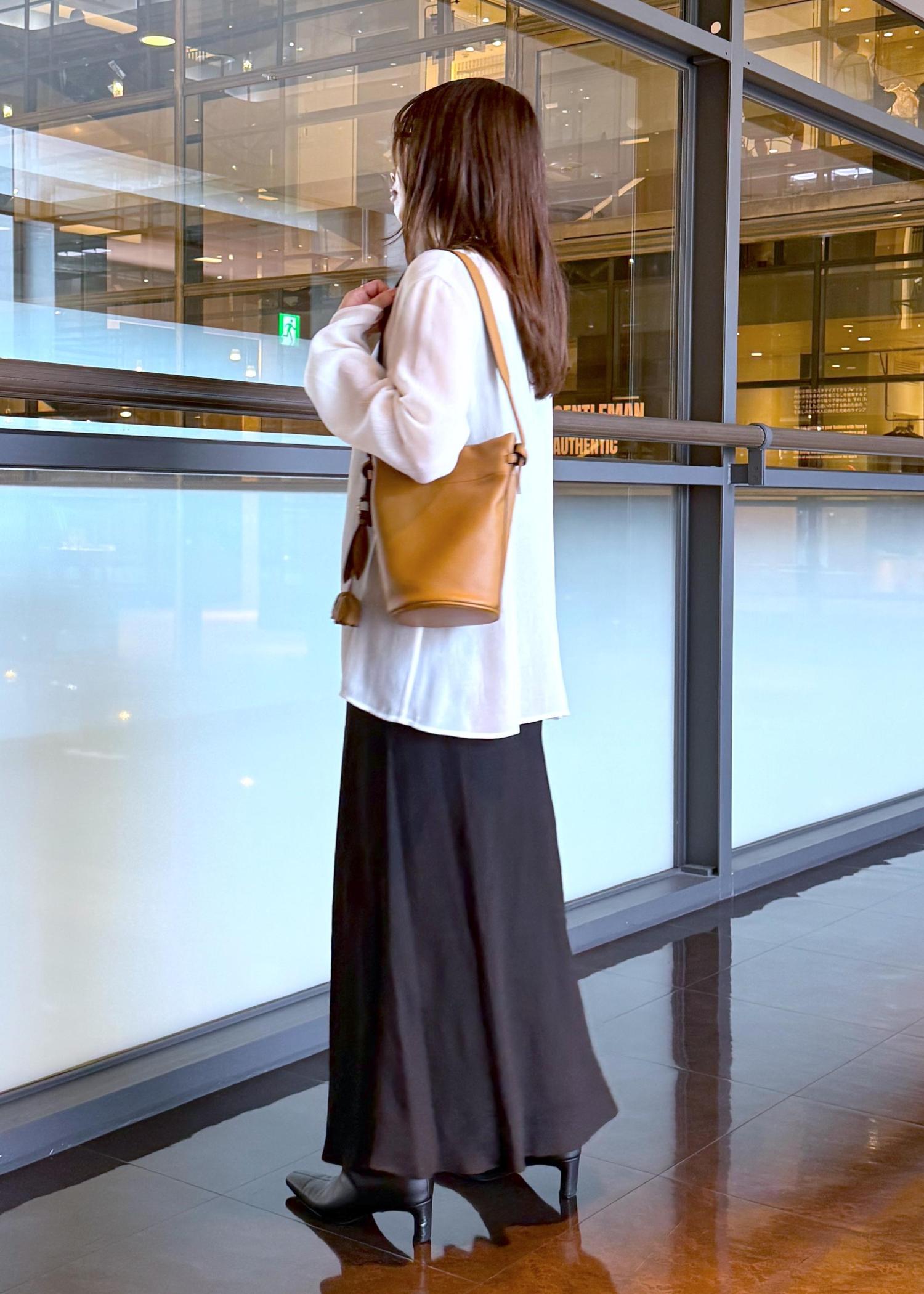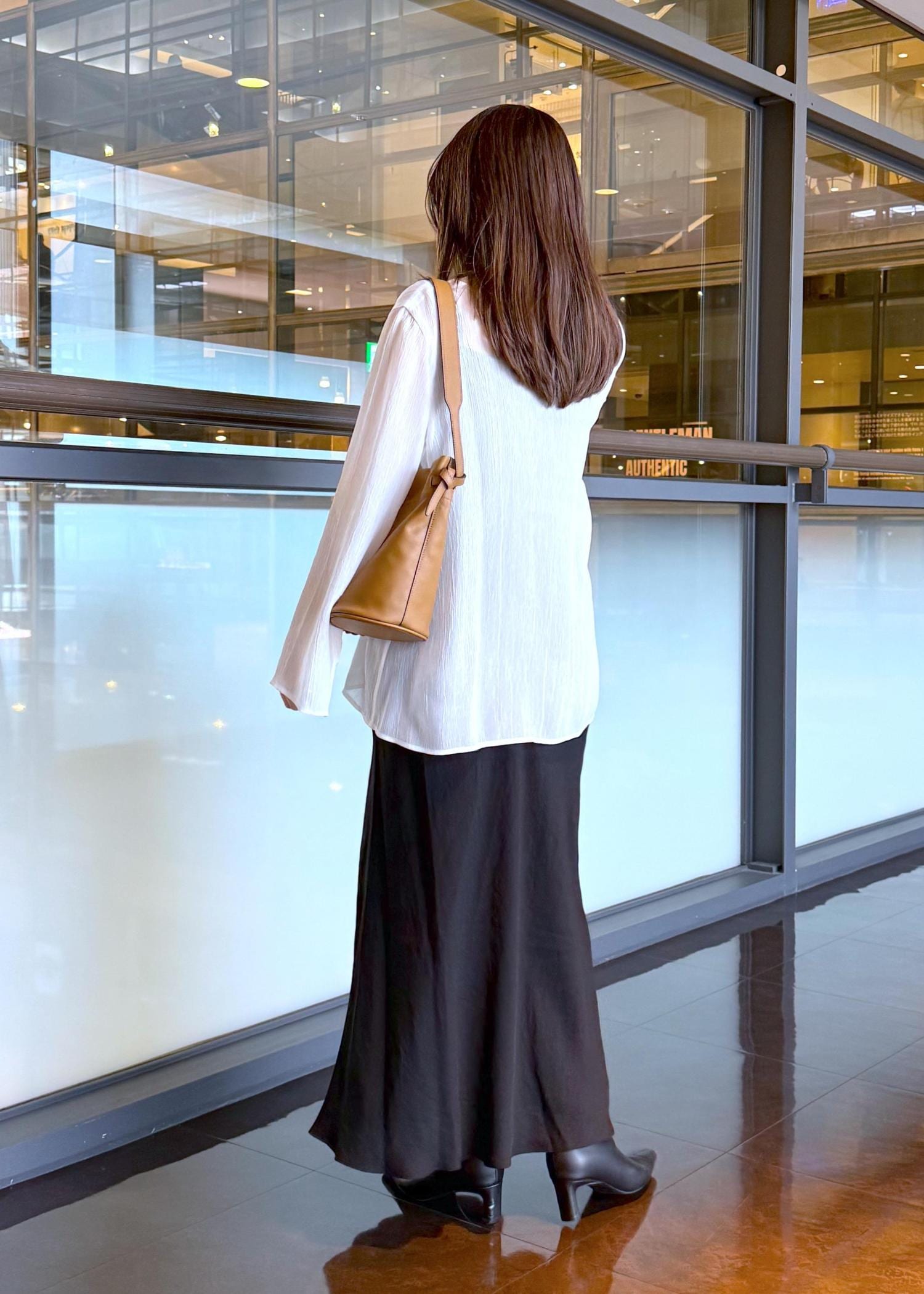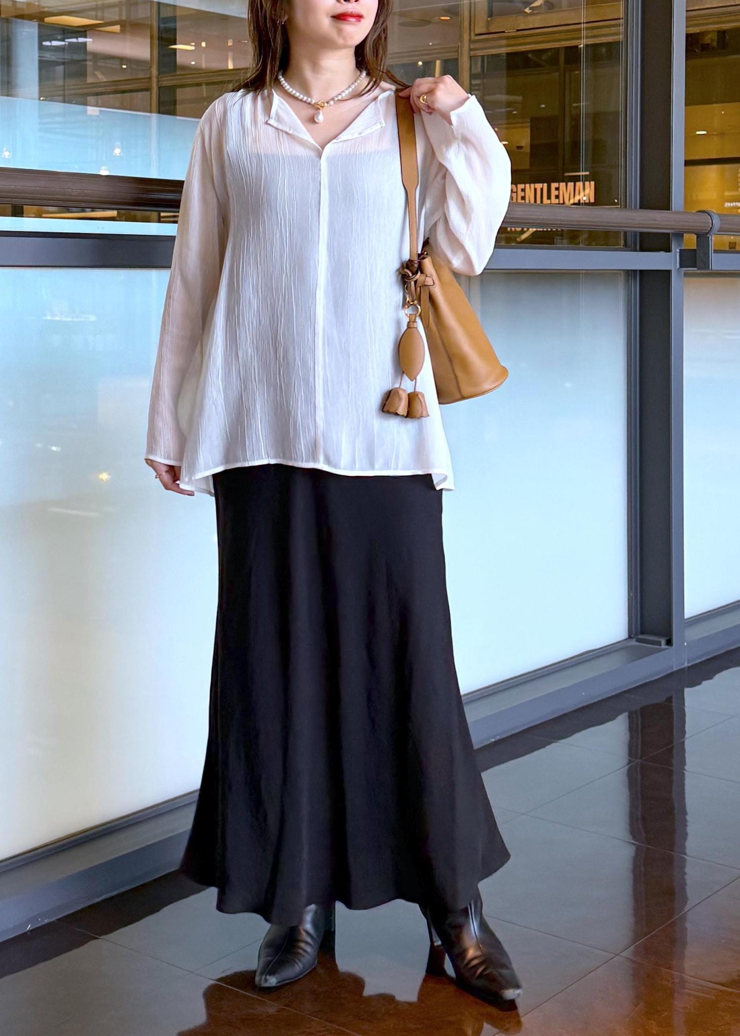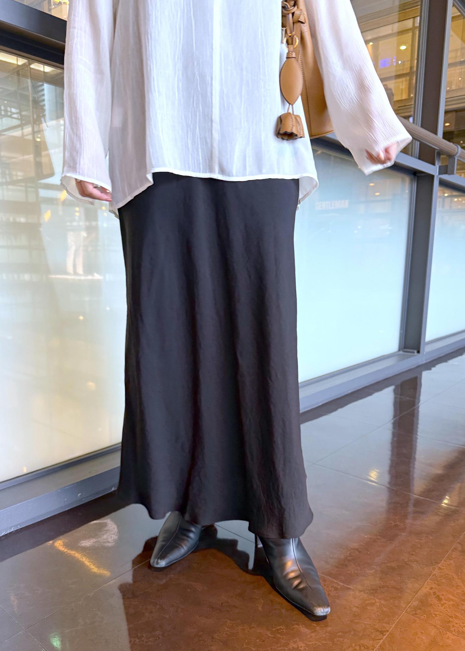 マーメイドスカートでもヒップラインが出にくいので、マーメイドラインが苦手な方でも取り入れやすいシルエットです。