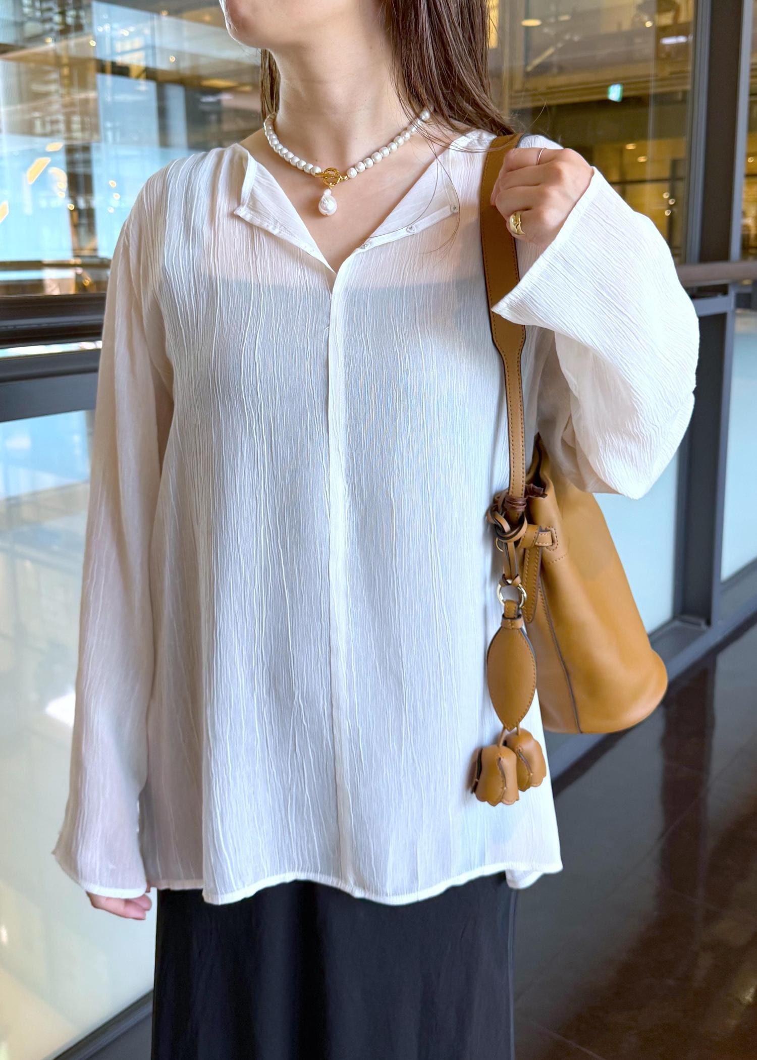 ROPÉ【洗える・前後2WAY】楊柳プルオーバー シアーブラウス【WEB・一部店舗限定】ホワイト / F¥17,600レビュースタッフ購入率の高い、シンプルだけど一枚でサマになるブラウスです♪