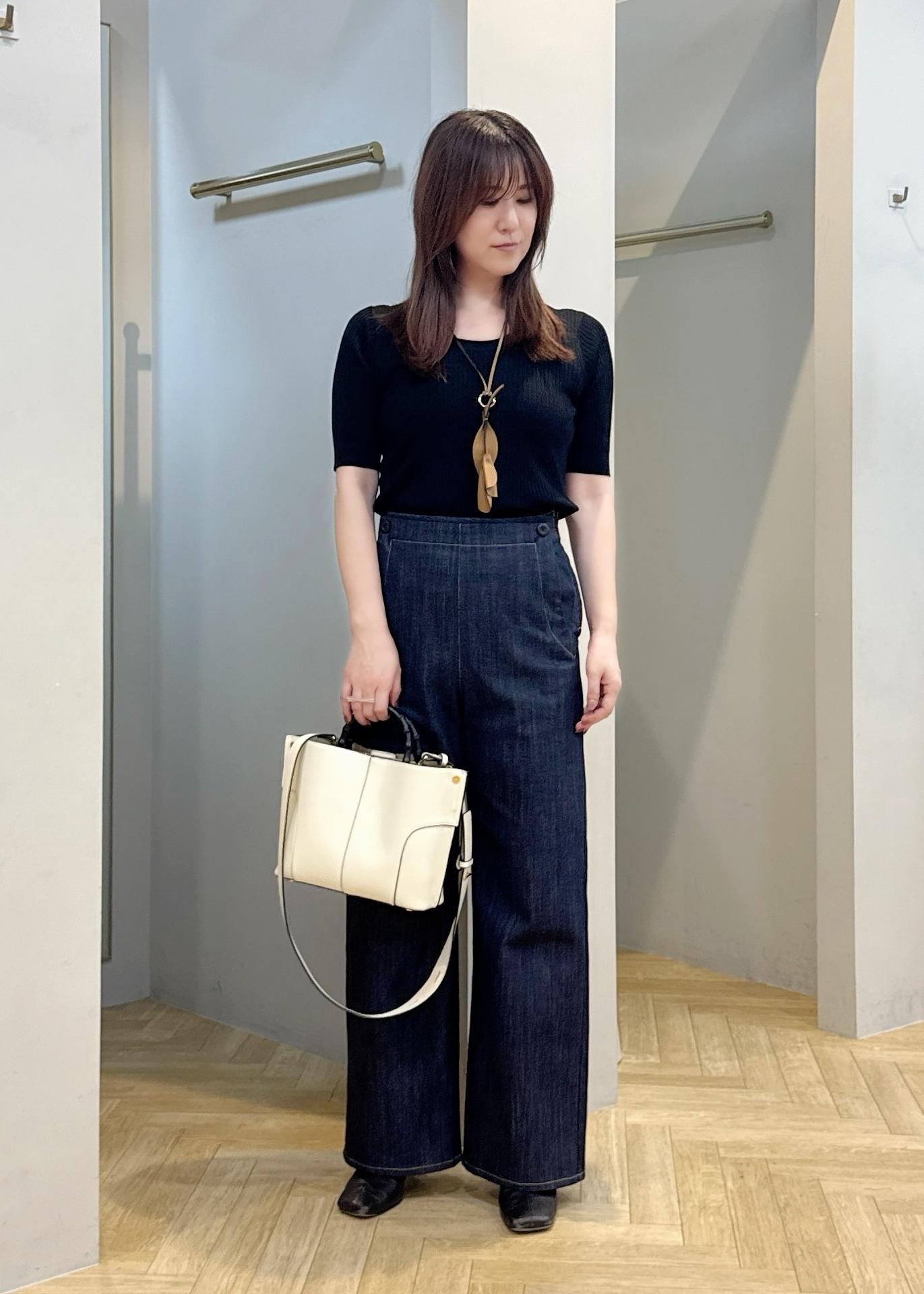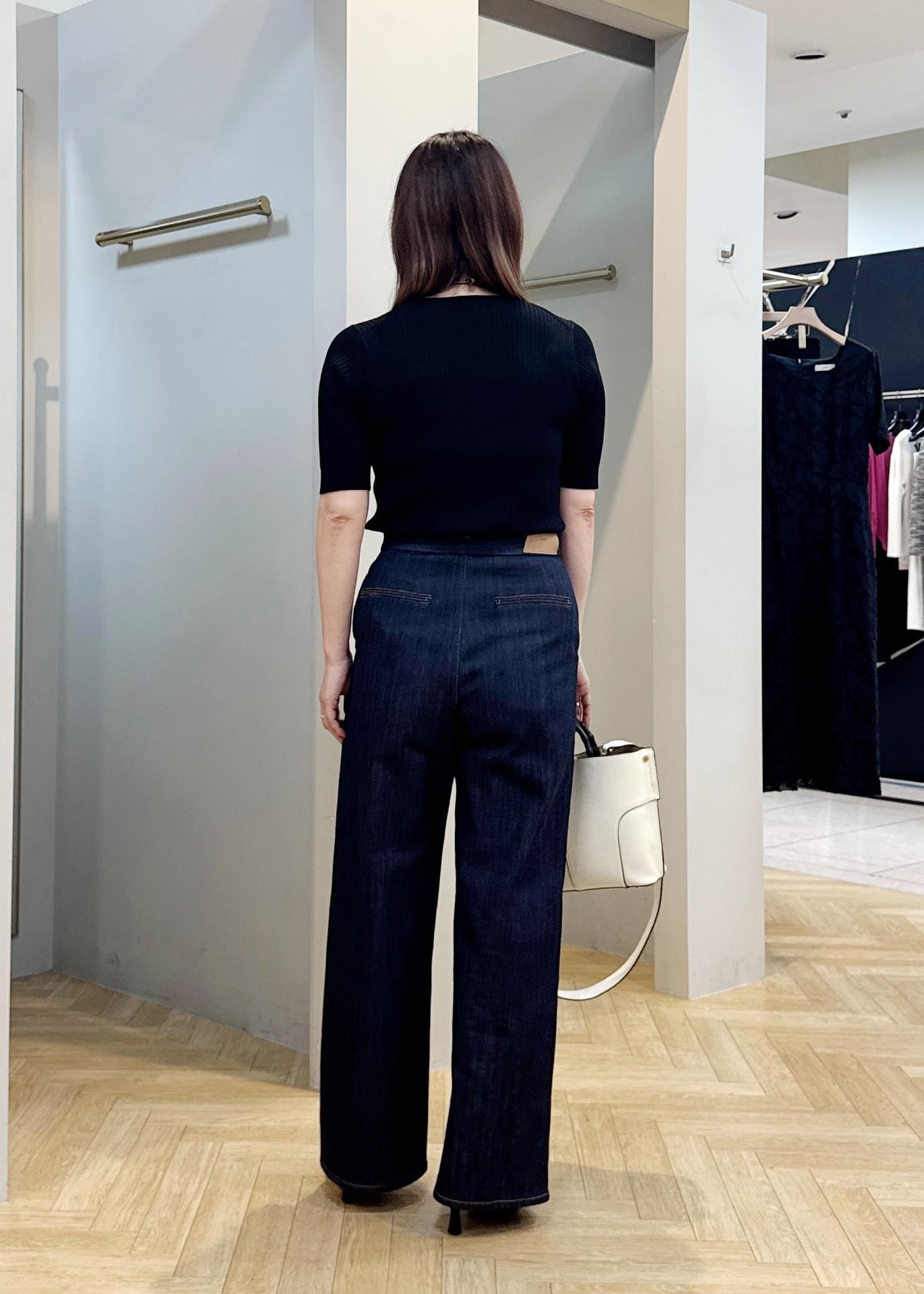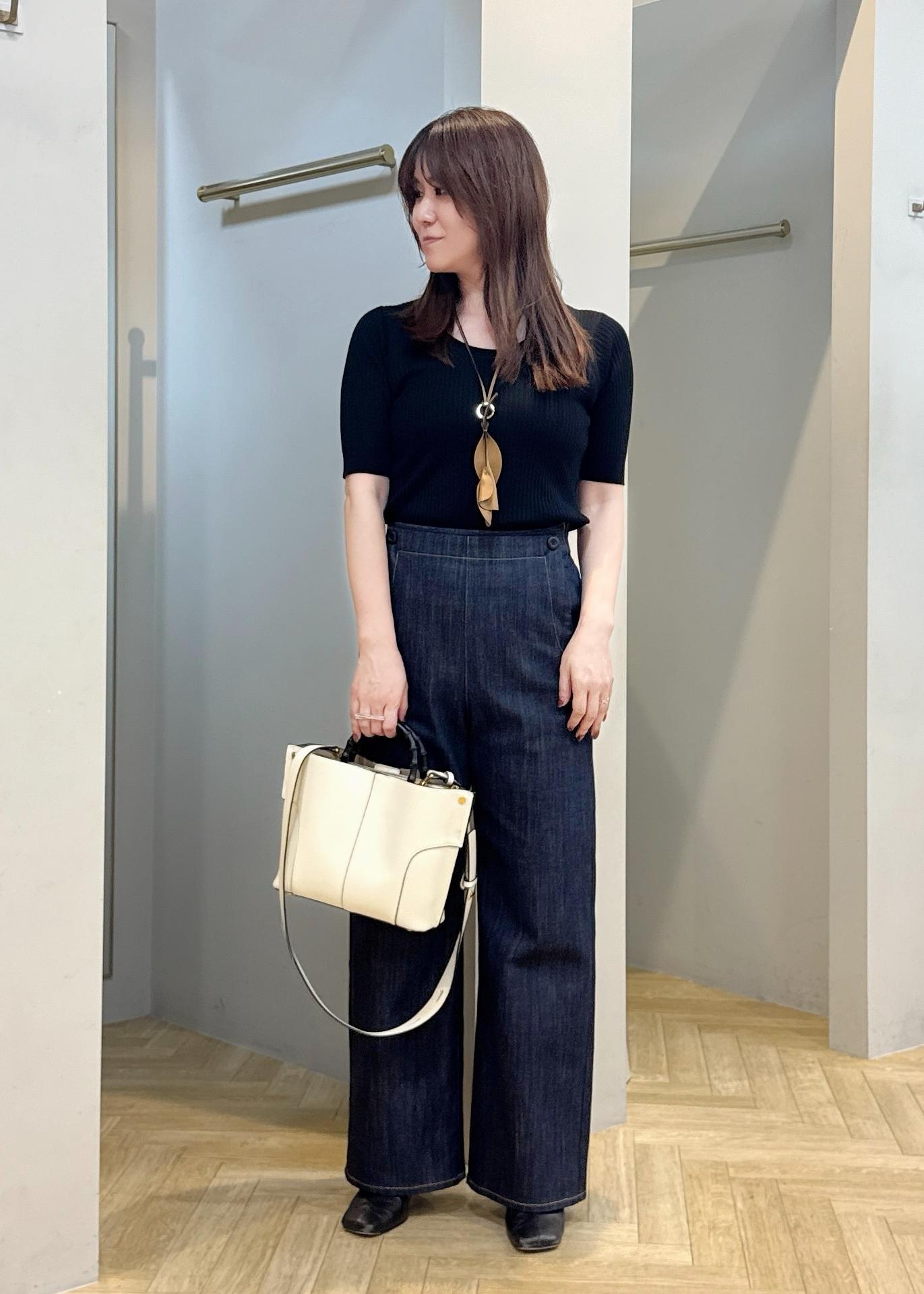 ハイウエストで足長効果もあり、ほどよいワイド感が足をスッと見せてくれます。