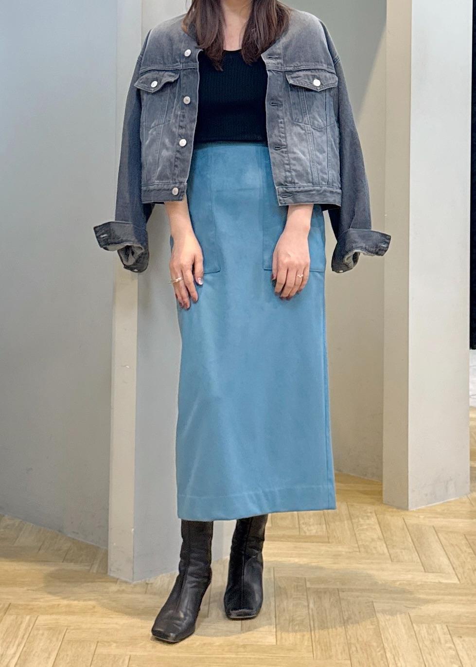 岡山デニムを使った店舗限定Gジャンを肩掛けに、ロペの人気スカートを合わせました。