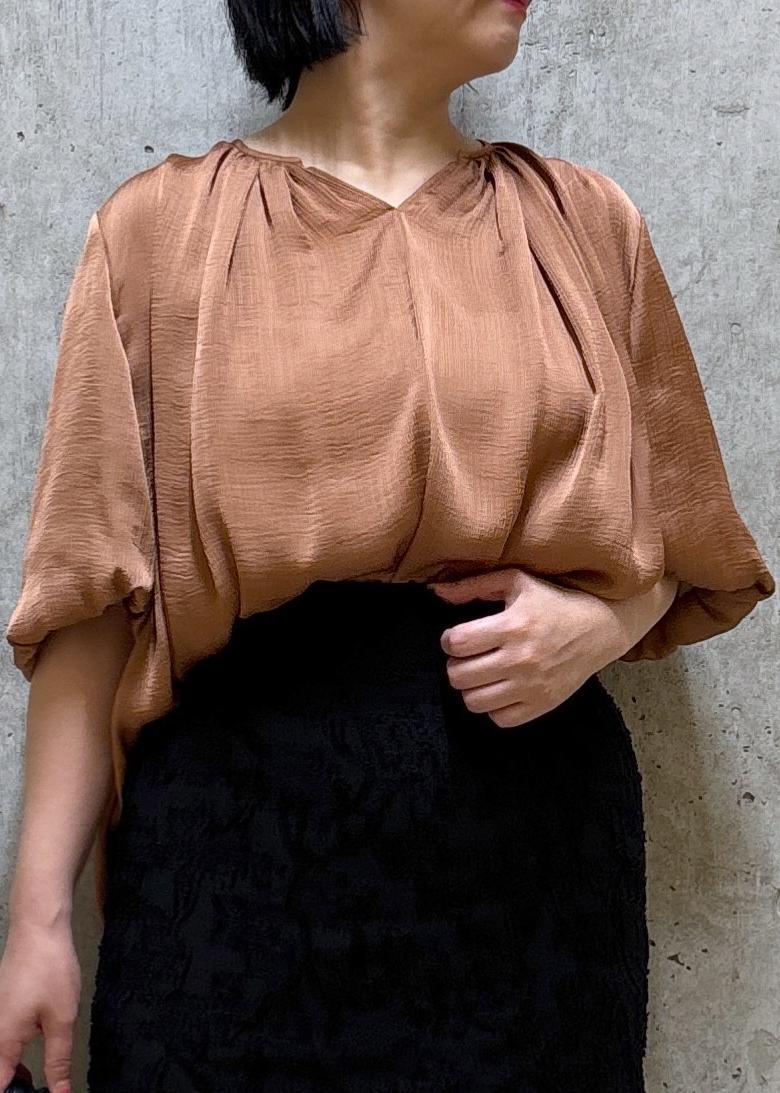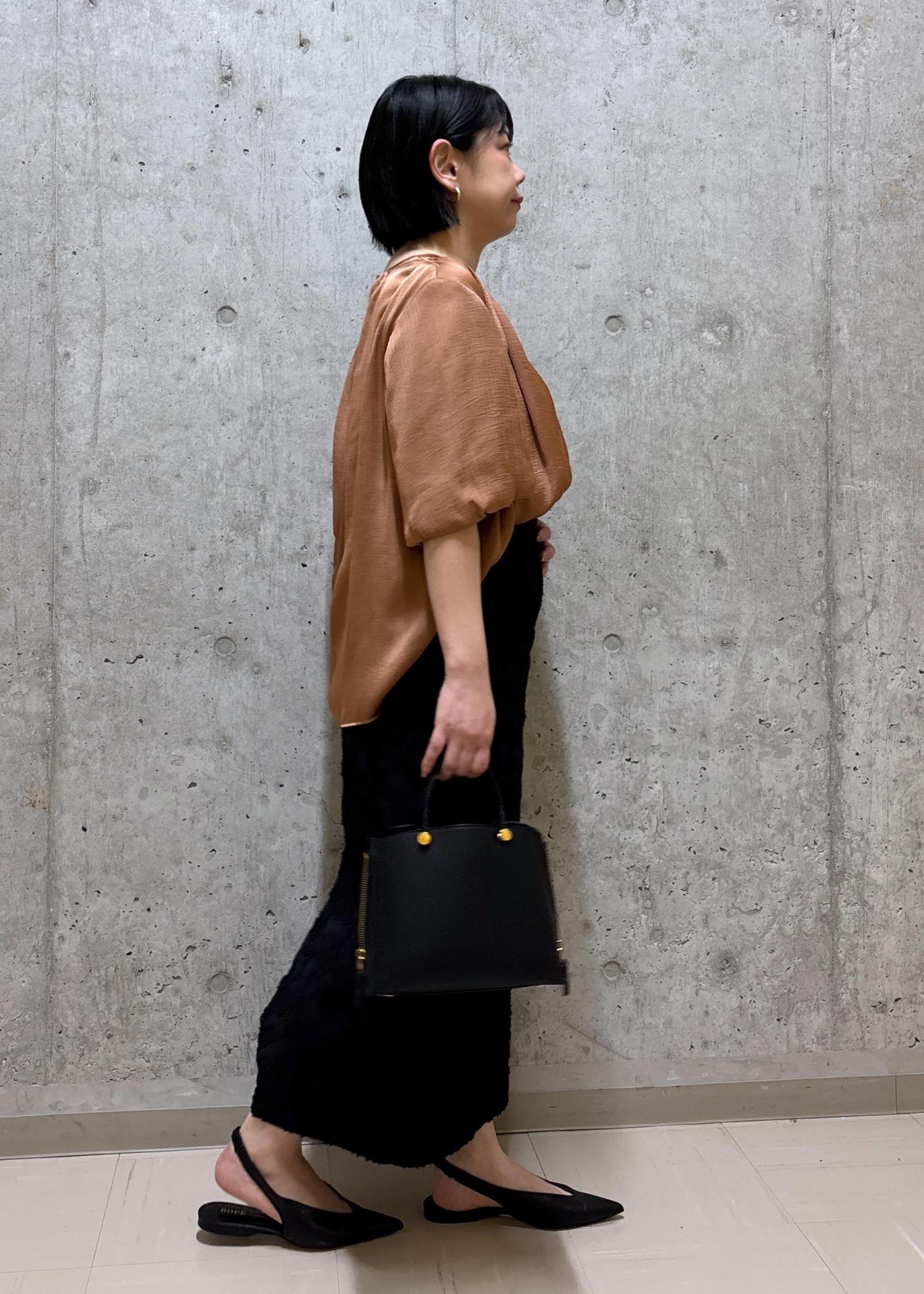 アウトレットROPÉ楊柳スキッパーブラウス/イージーケアレンガ / F¥10,450レビュー152cmでFサイズ着用