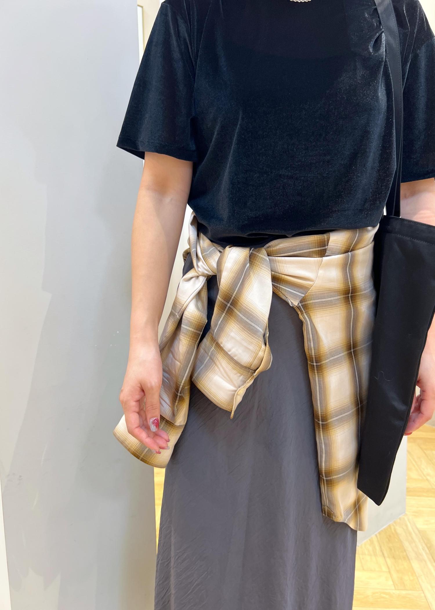 SALON adam et ropéShuttlenotesオンブレチェックネクタイシャツベージュ系 / F¥24,200レビューオーバーサイズでヒップも隠れる