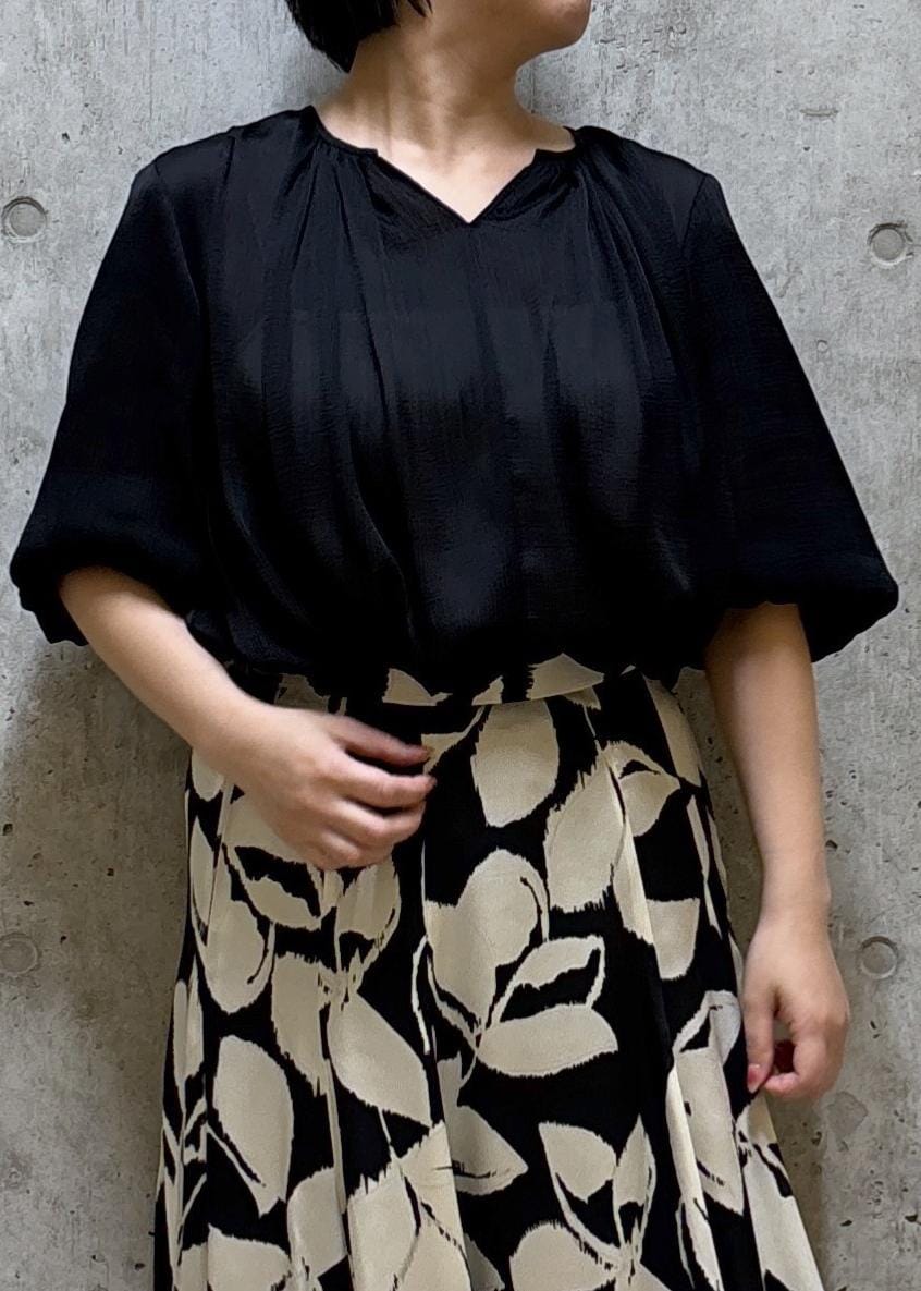 アウトレットROPÉ楊柳スキッパーブラウス/イージーケアブラック / F¥10,450レビュー152cmでFサイズ着用