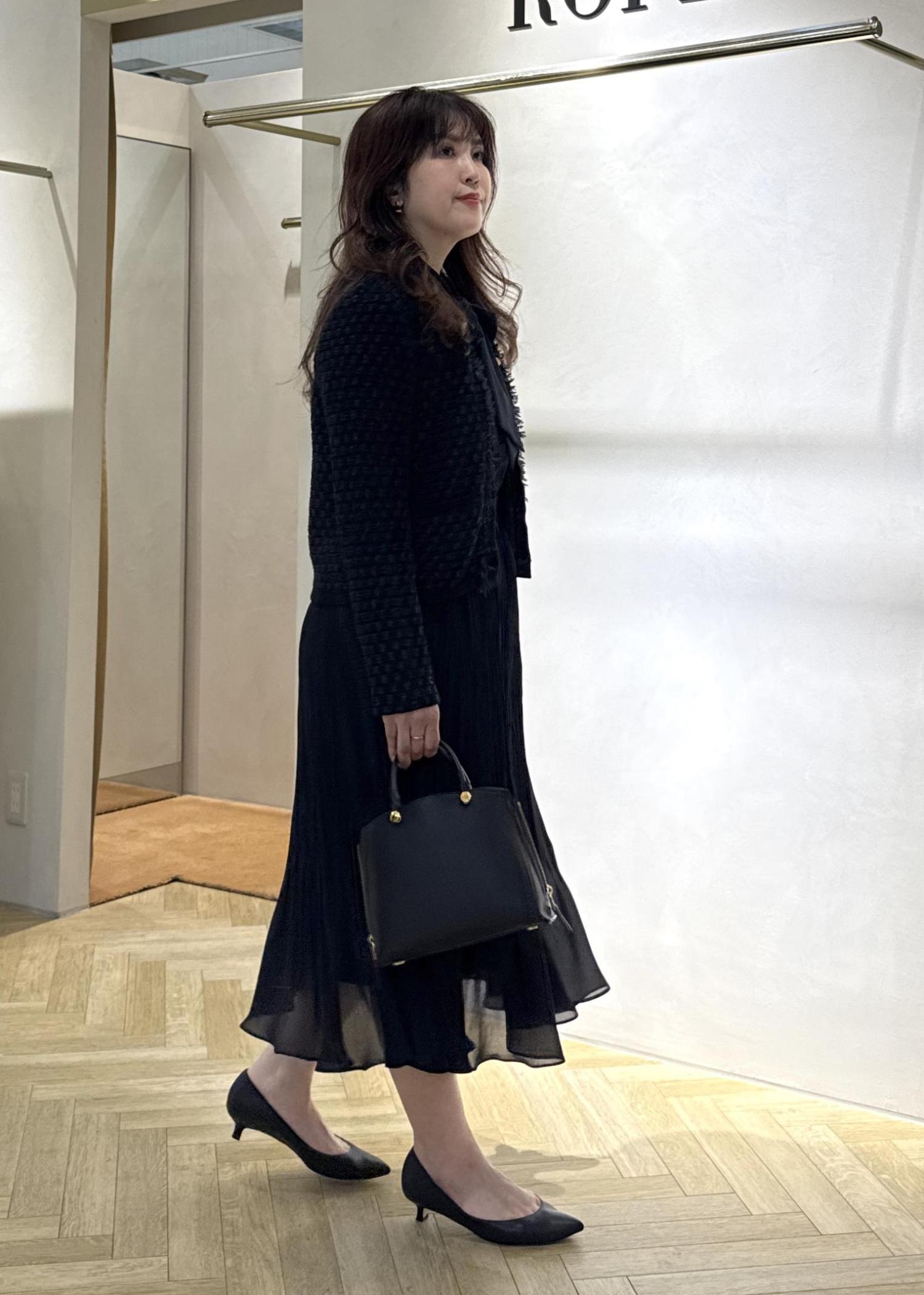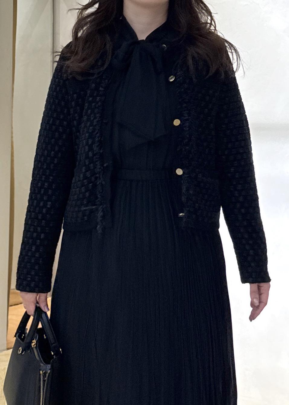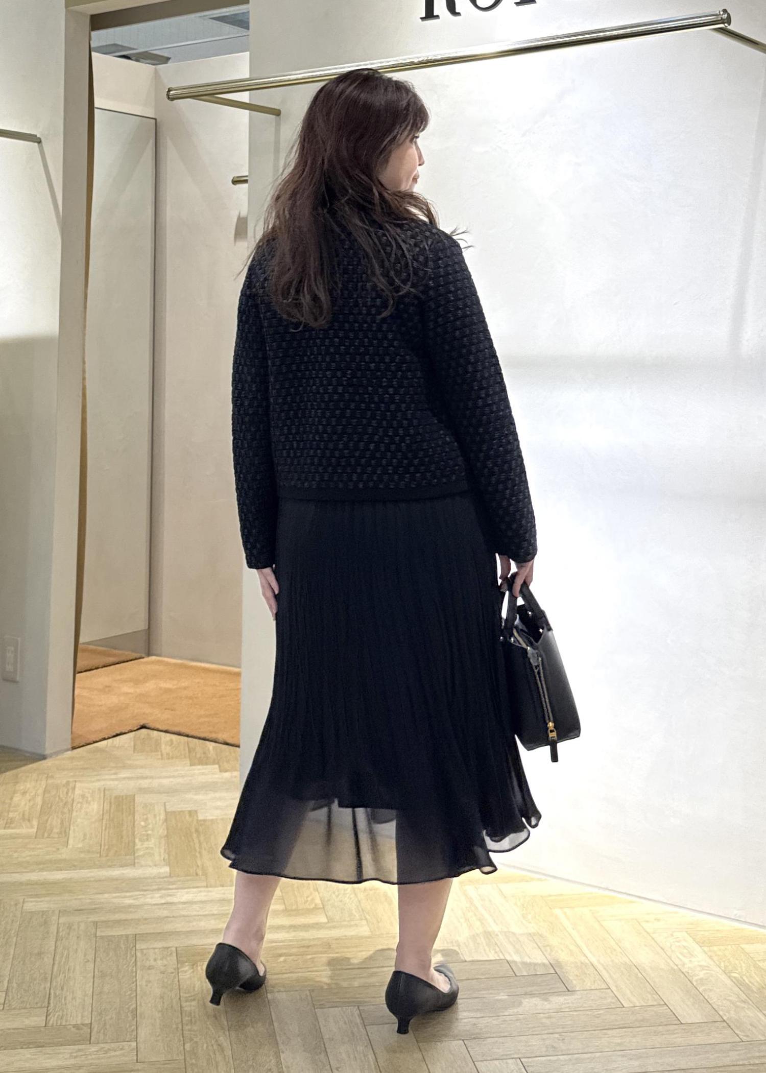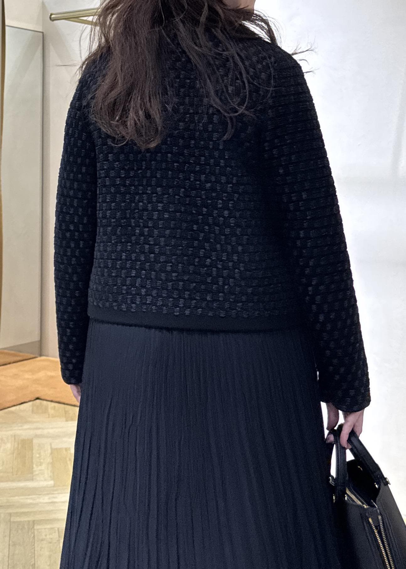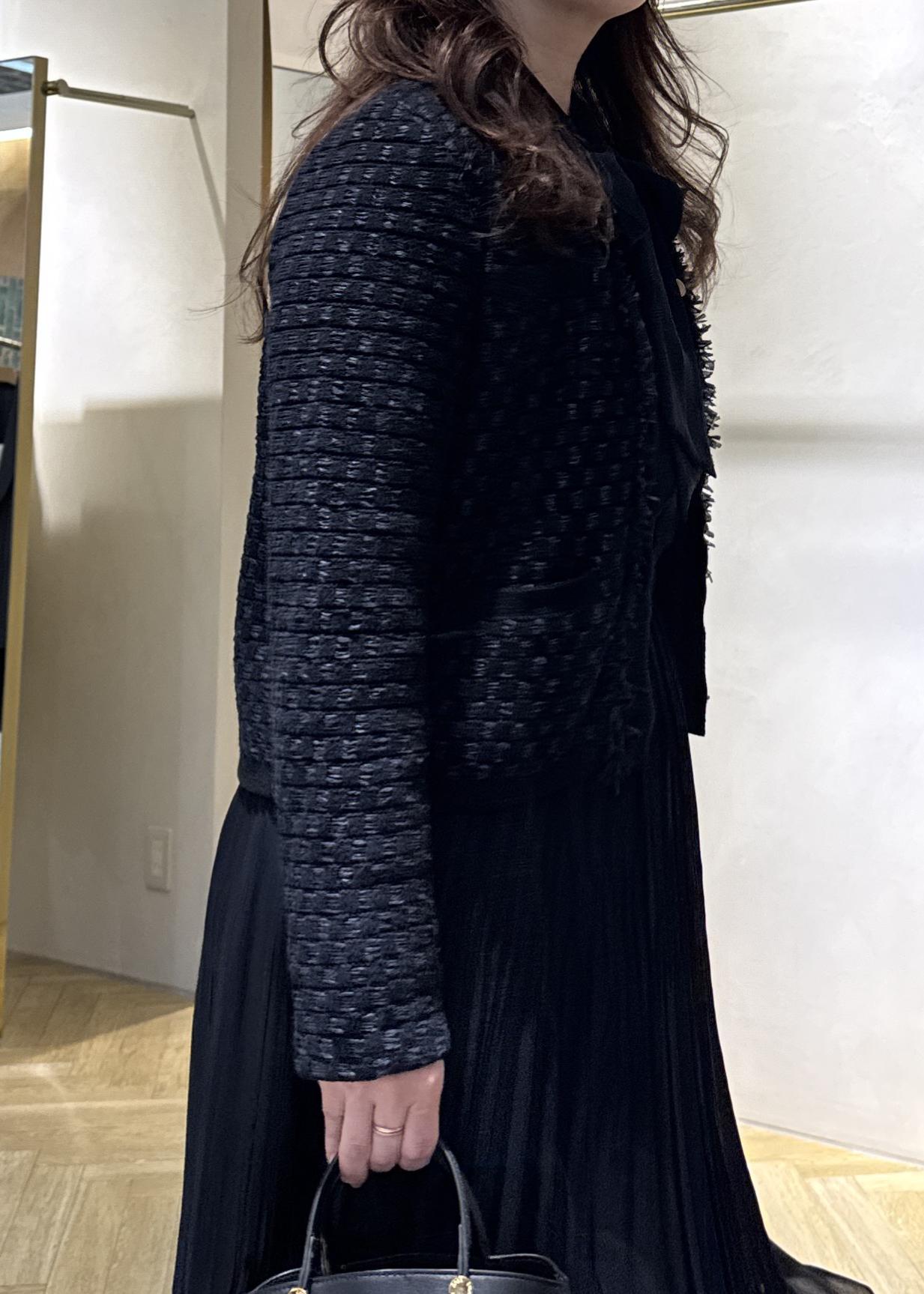 カーディガンのような感覚で羽織れますがツィードライクでセレモニーやパーティーなどキチンとしたいシーンにもオススメ!
