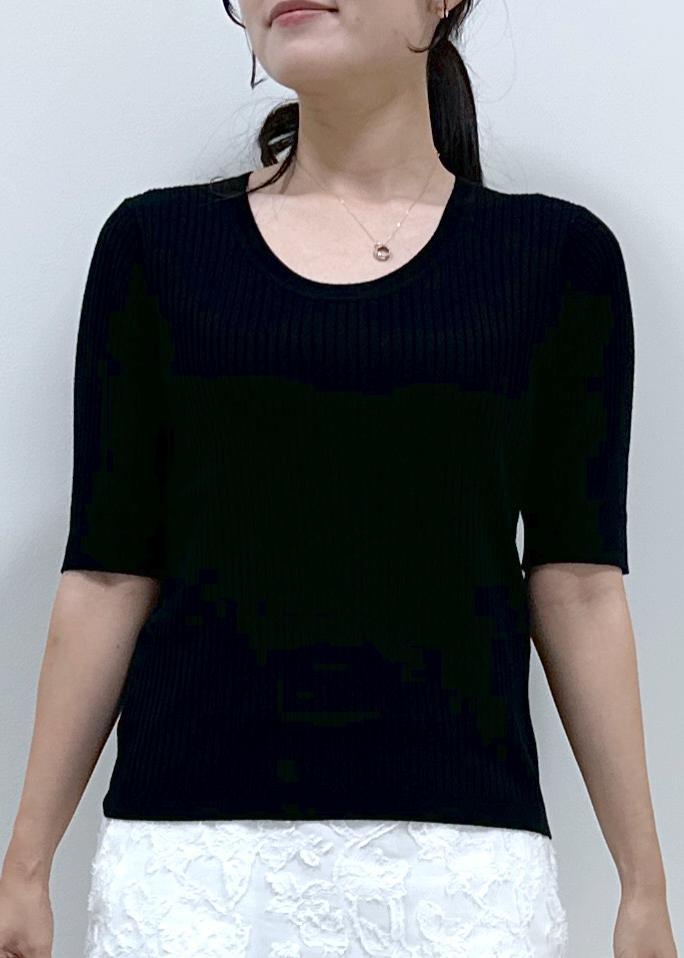 今回はスッキリ黒のリブニットと合わせて