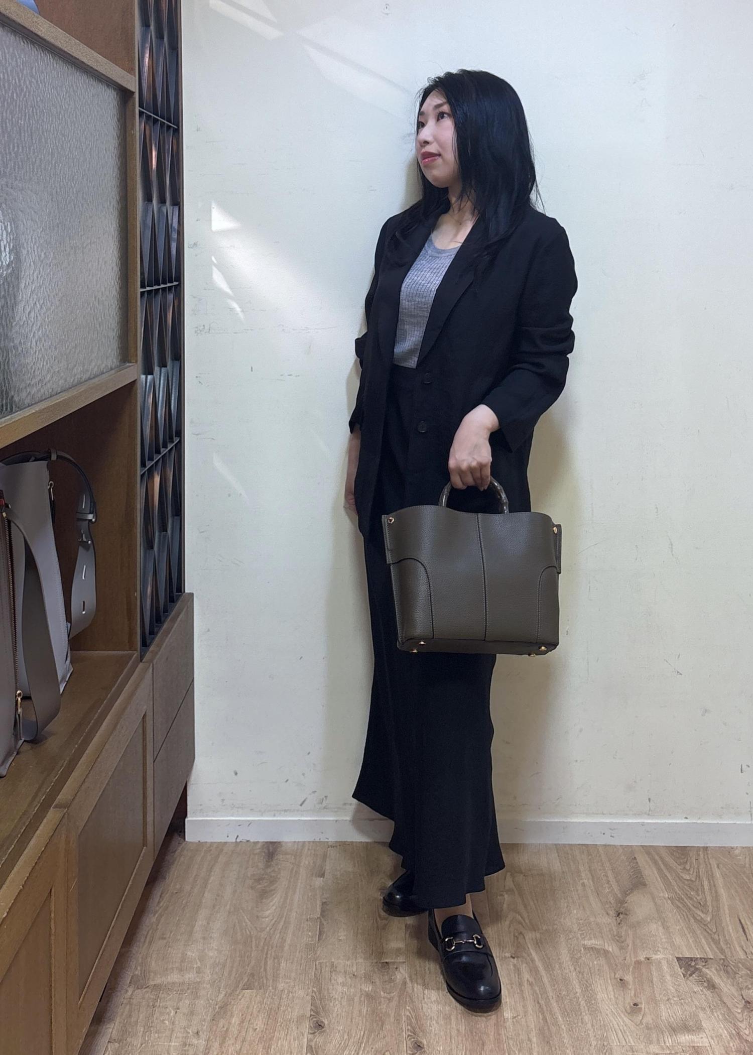 バンブーハンドルが上品で、お仕事からオフのカジュアルスタイルまで幅広く合わせることができます。