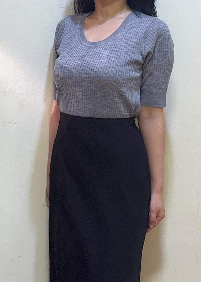 ROPÉワイドリブラウンドネック スーパーメリノウール ニット/イージーケアグレー /¥8,250レビュー身長152cm Fサイズ着用