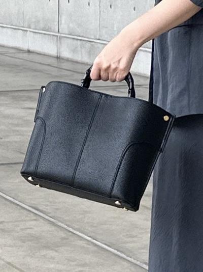 コンパクトですが長財布やポーチはしっかり入る程よい大きさで普段使いはもちろん、お仕事でも使えるきちんと感もある万能バッグです。