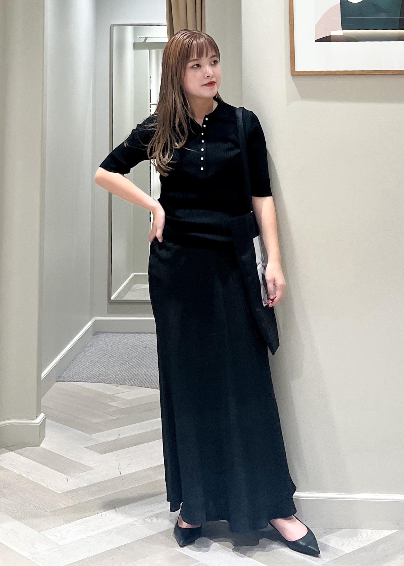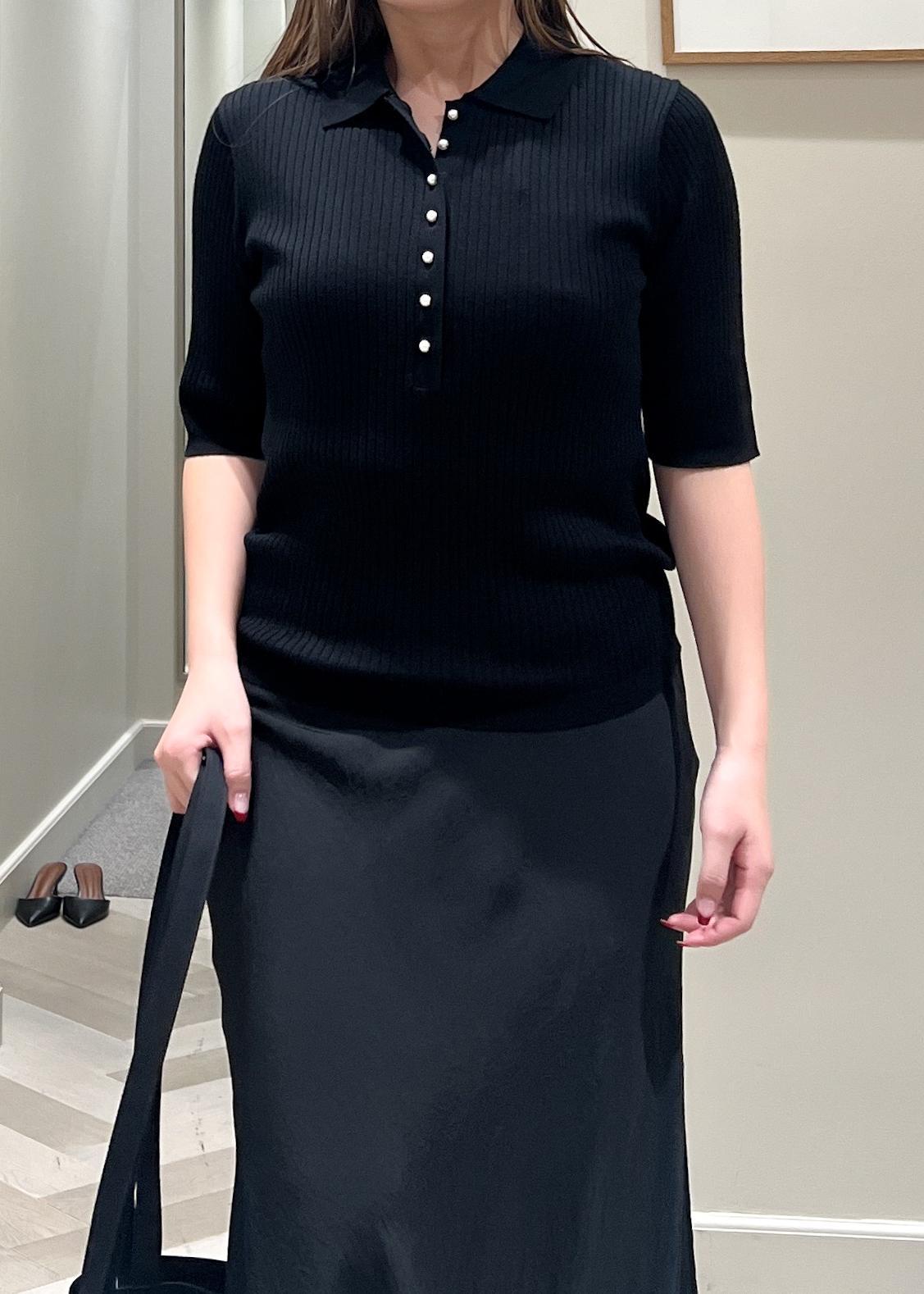 ROPÉパール釦ポロニット/イージーケアブラック / F¥19,800レビュー体にフィットしますが、あまりラインを拾わず