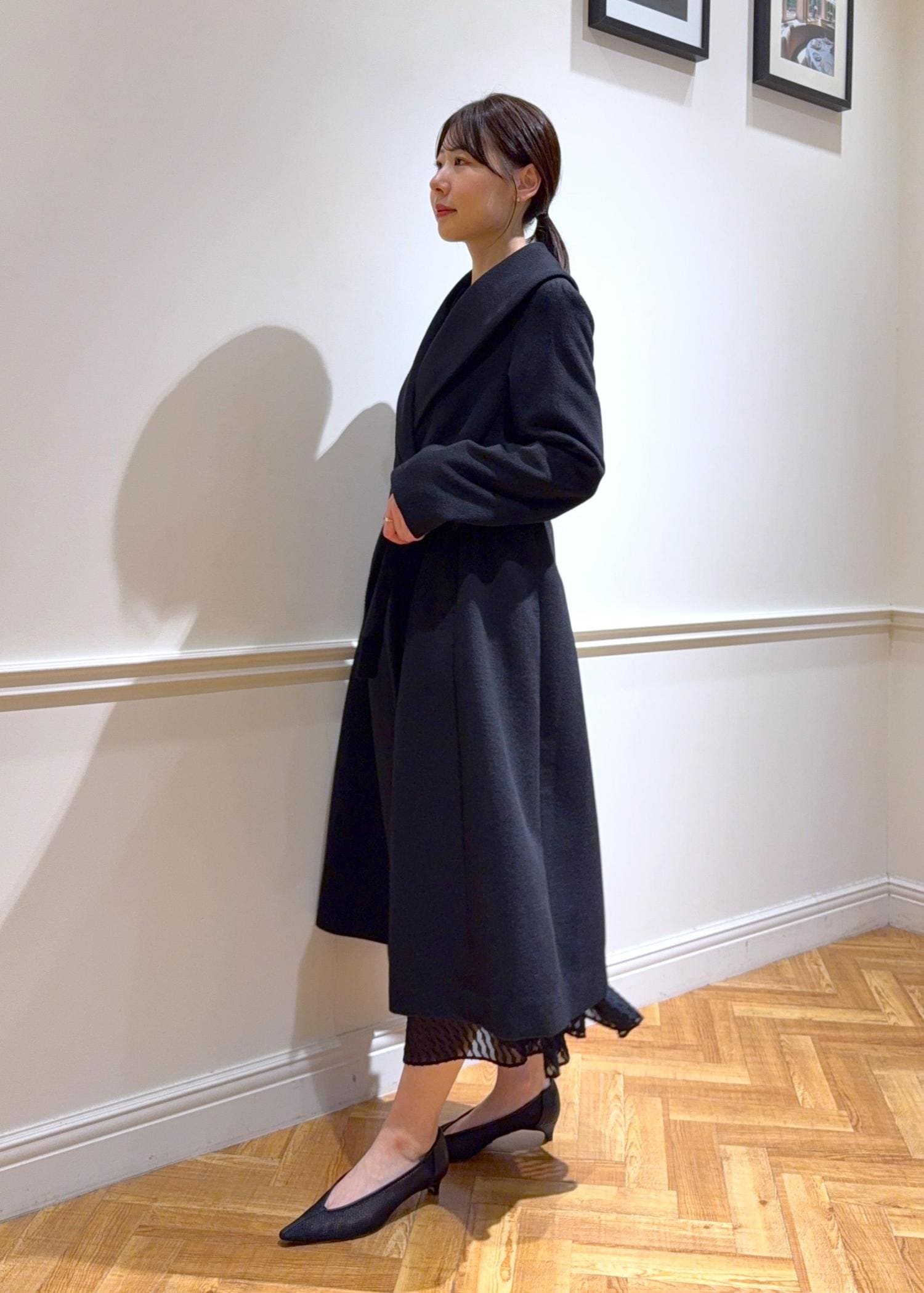 NEW!ROPÉプレミアムカシミヤ ショールカラーコート【25AW】ブラック / 38¥69,300レビュー身長165cmで38サイズを着用しています。