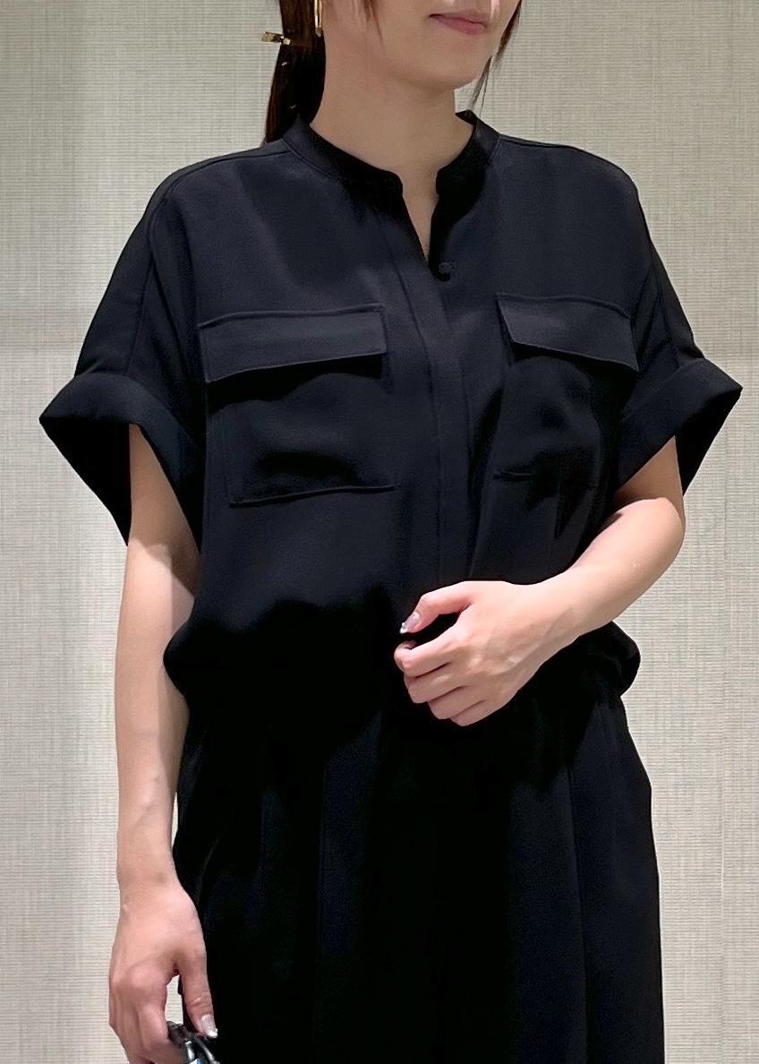 ROPÉ【洗える・カセット服】バックサテンフラップブラウス/お仕事・通勤・セットアップ対応【ドラマ着用】ブラック / F¥25,300レビュー【サイズ感】