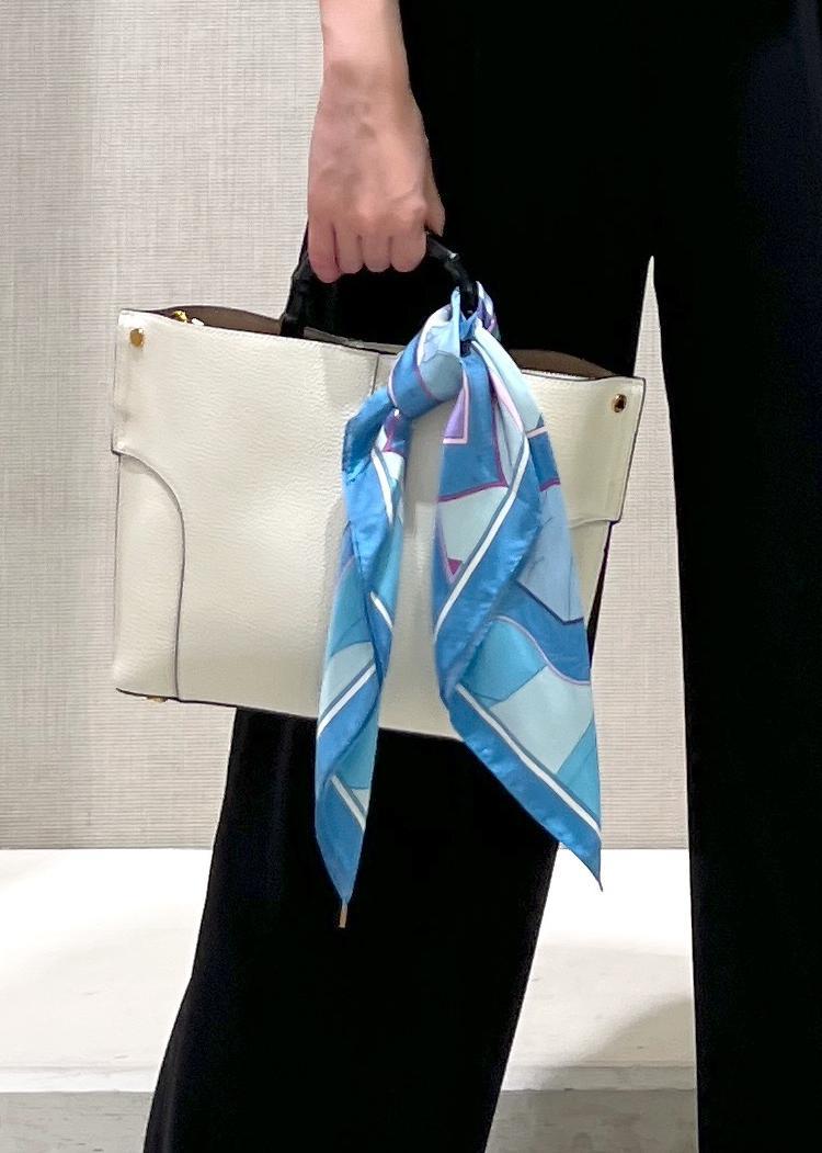 大きすぎず、首元やバッグに1巻で丁度良く結べるサイズ感です。