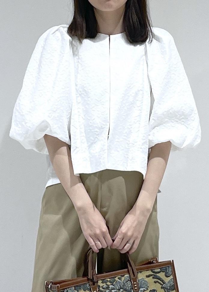 バルーンスリーブが目を惹くデザインブラウス。