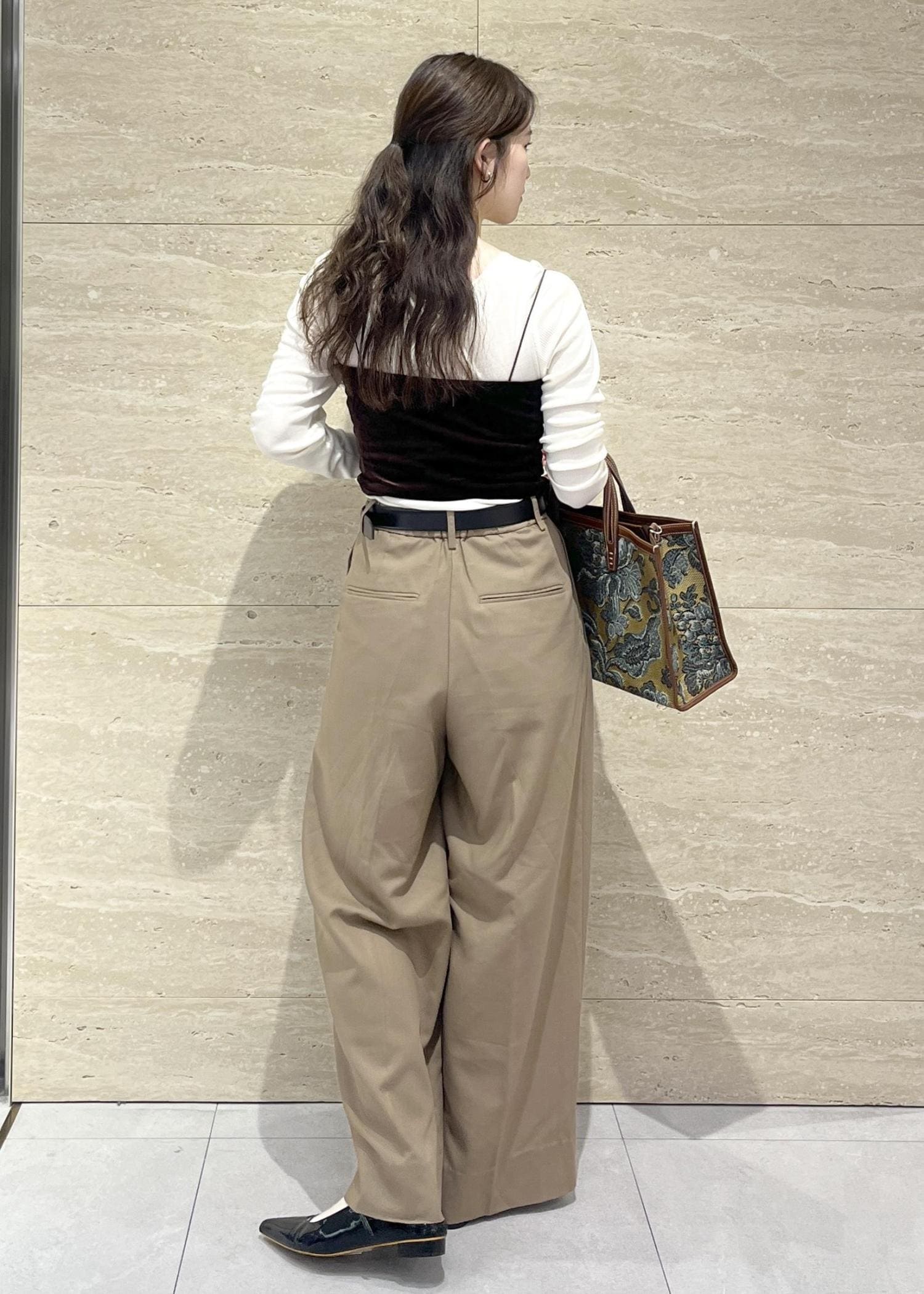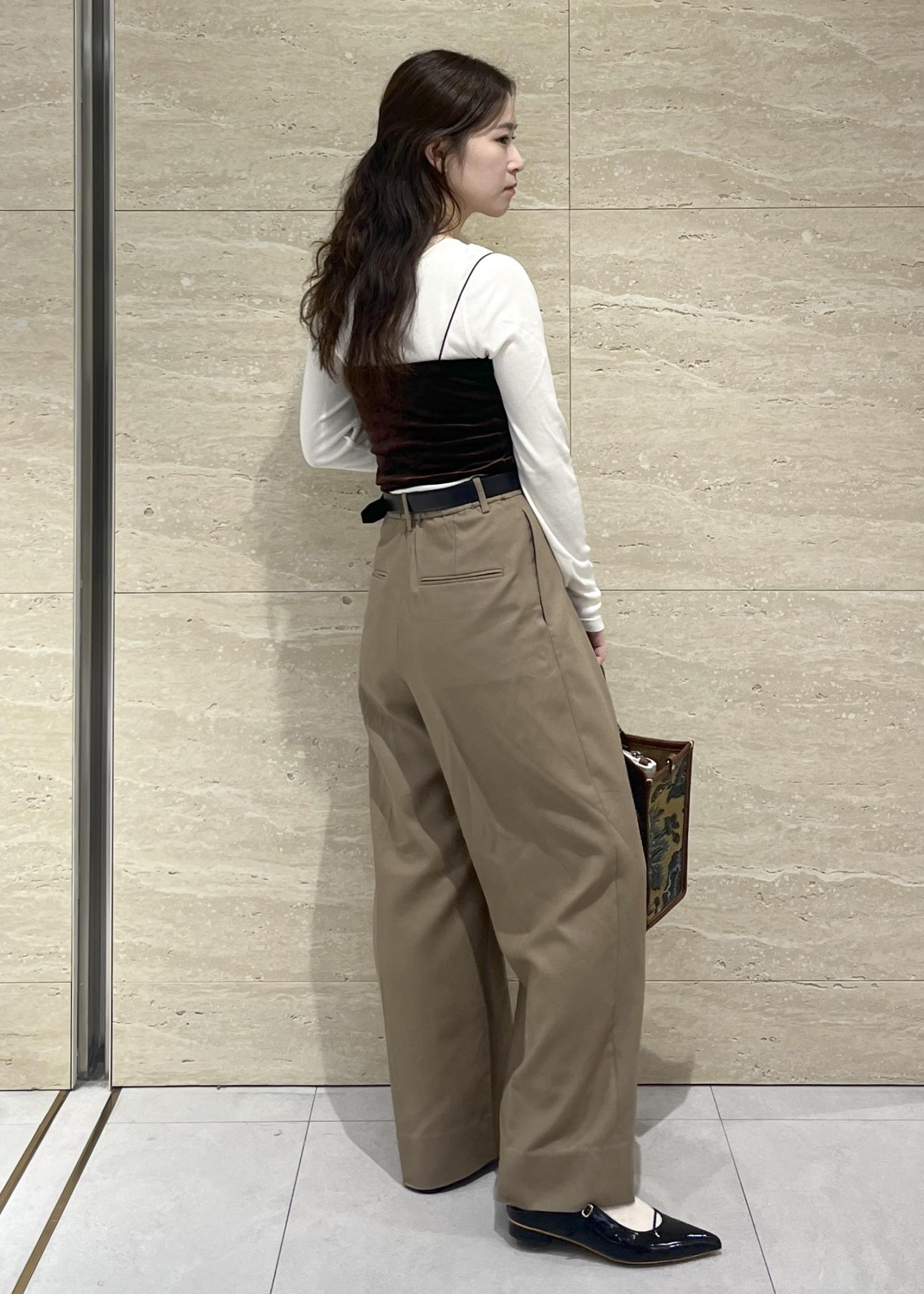 SALON adam et ropéインバーテッドタックパンツ/スラックスベージュ / S¥25,300レビュー155㎝、Sサイズを2㎝裾上げしています。