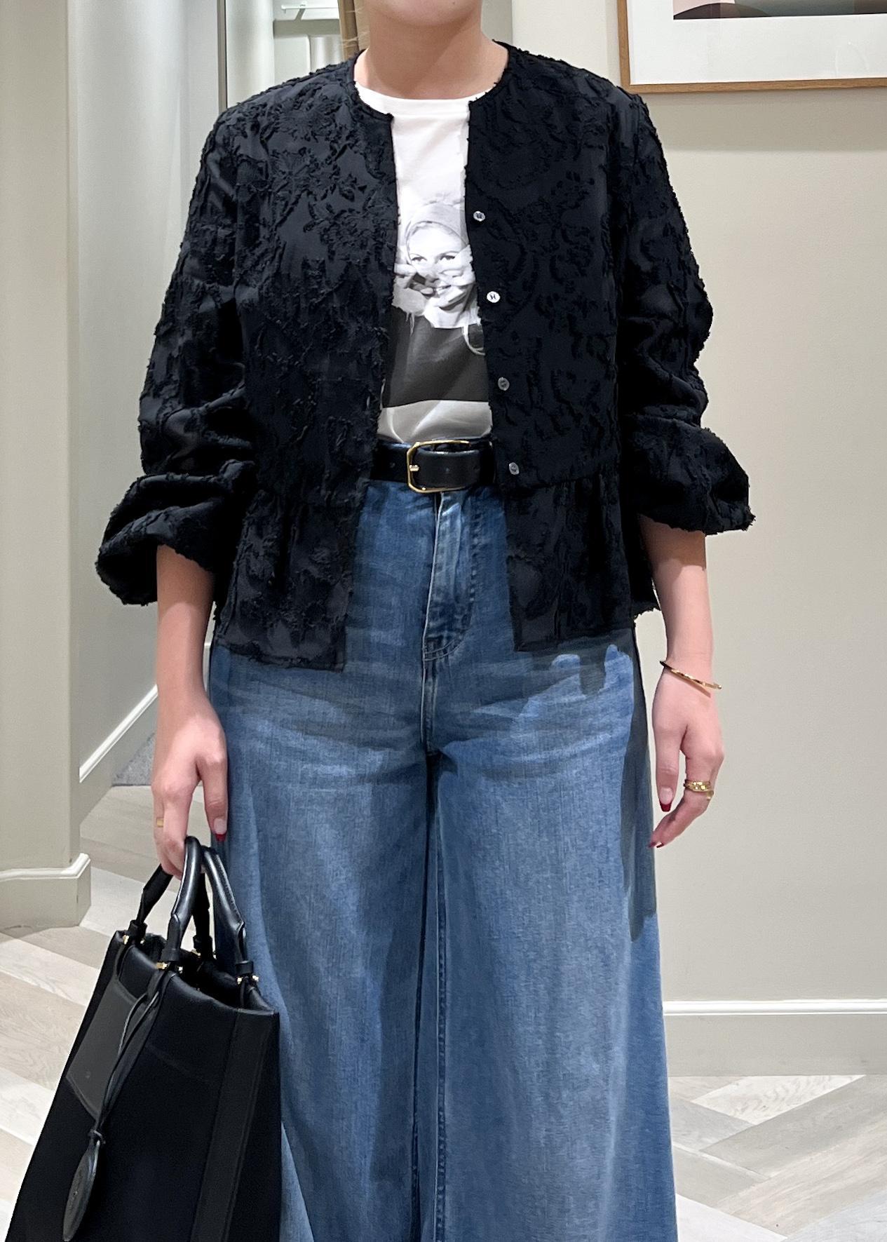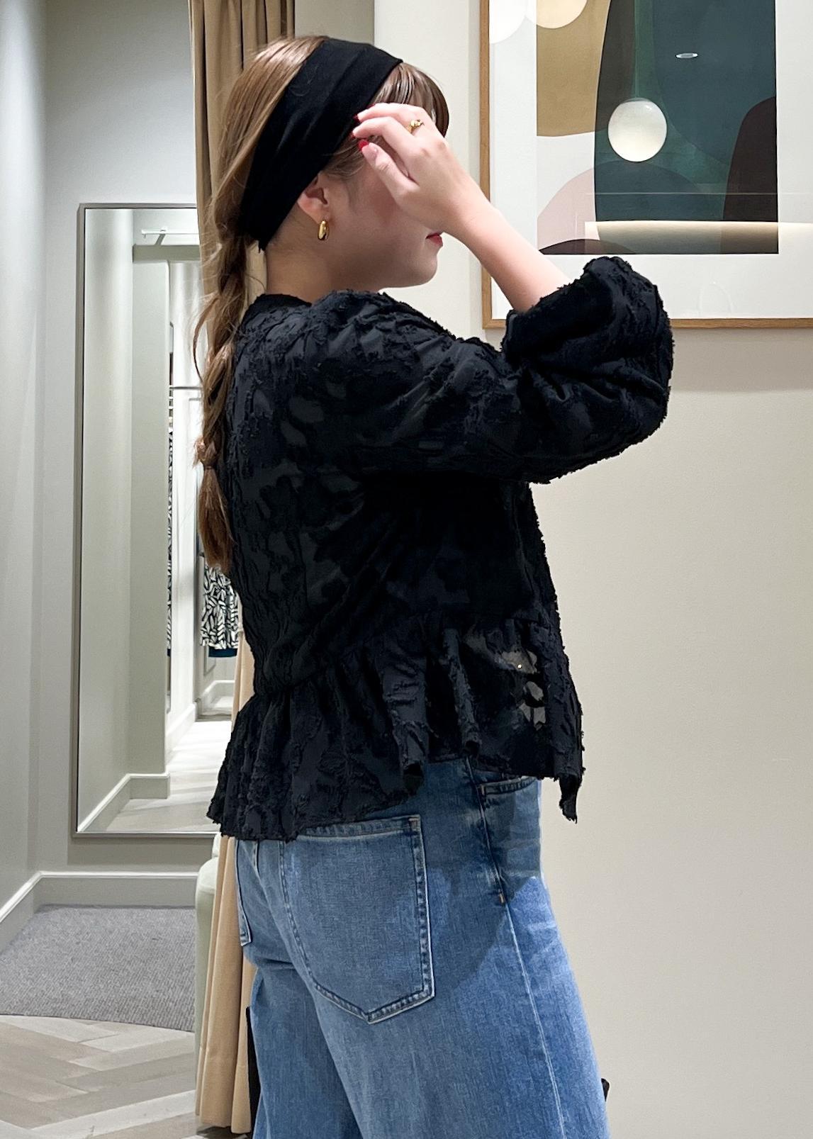 ROPÉペプラムジャガードブラウス/イージーケアブラック / F¥25,300レビュー袖口がゴムなので捲れます。