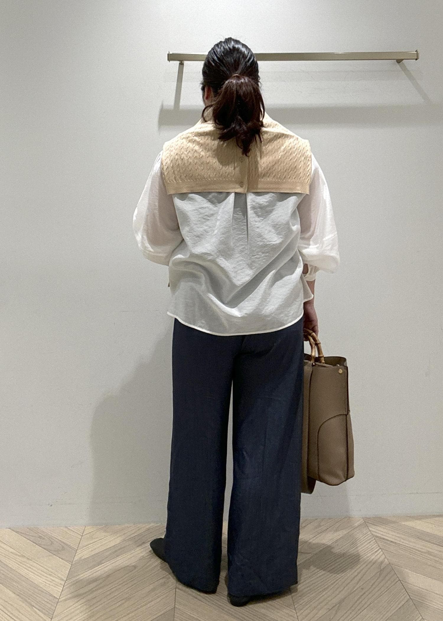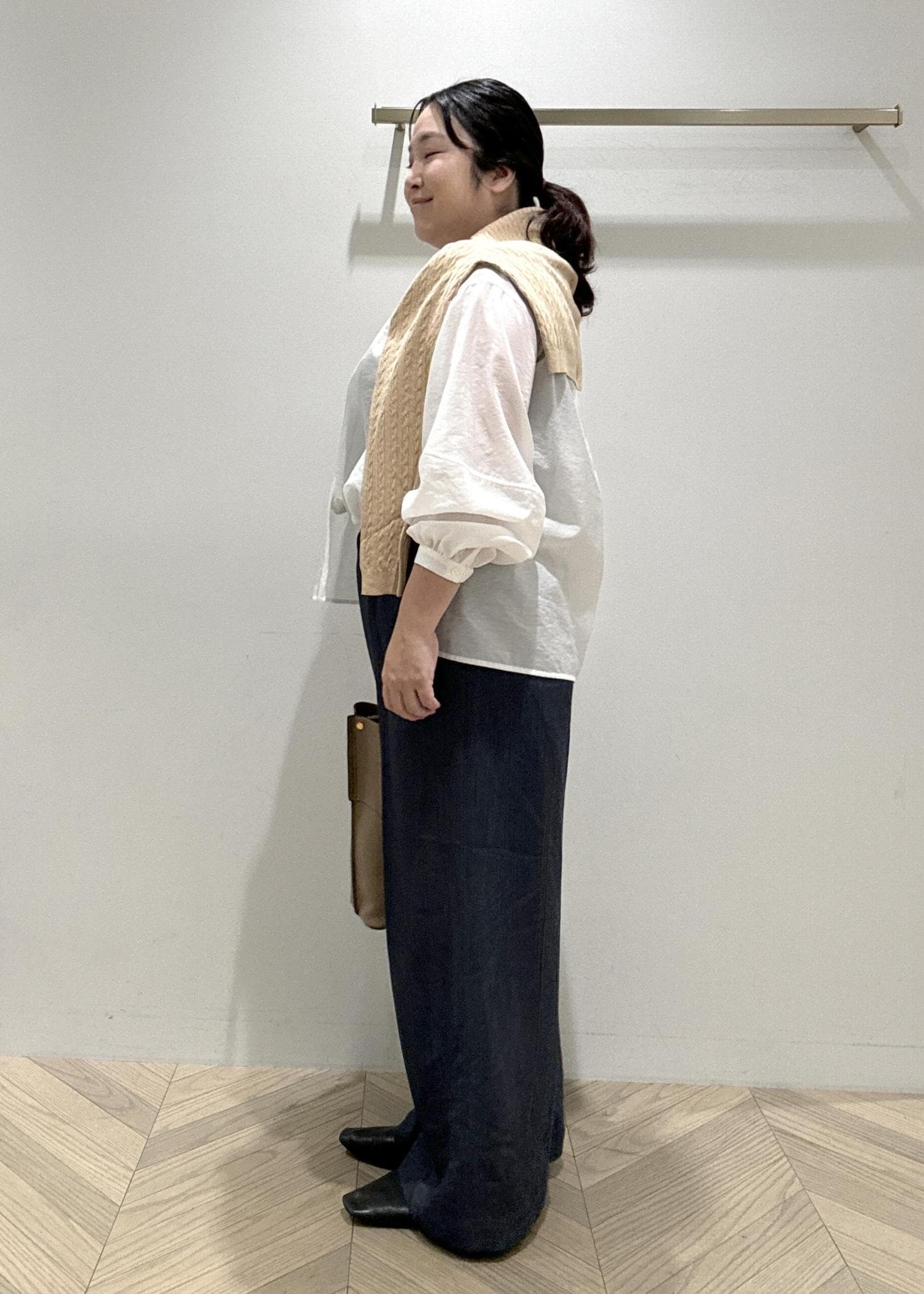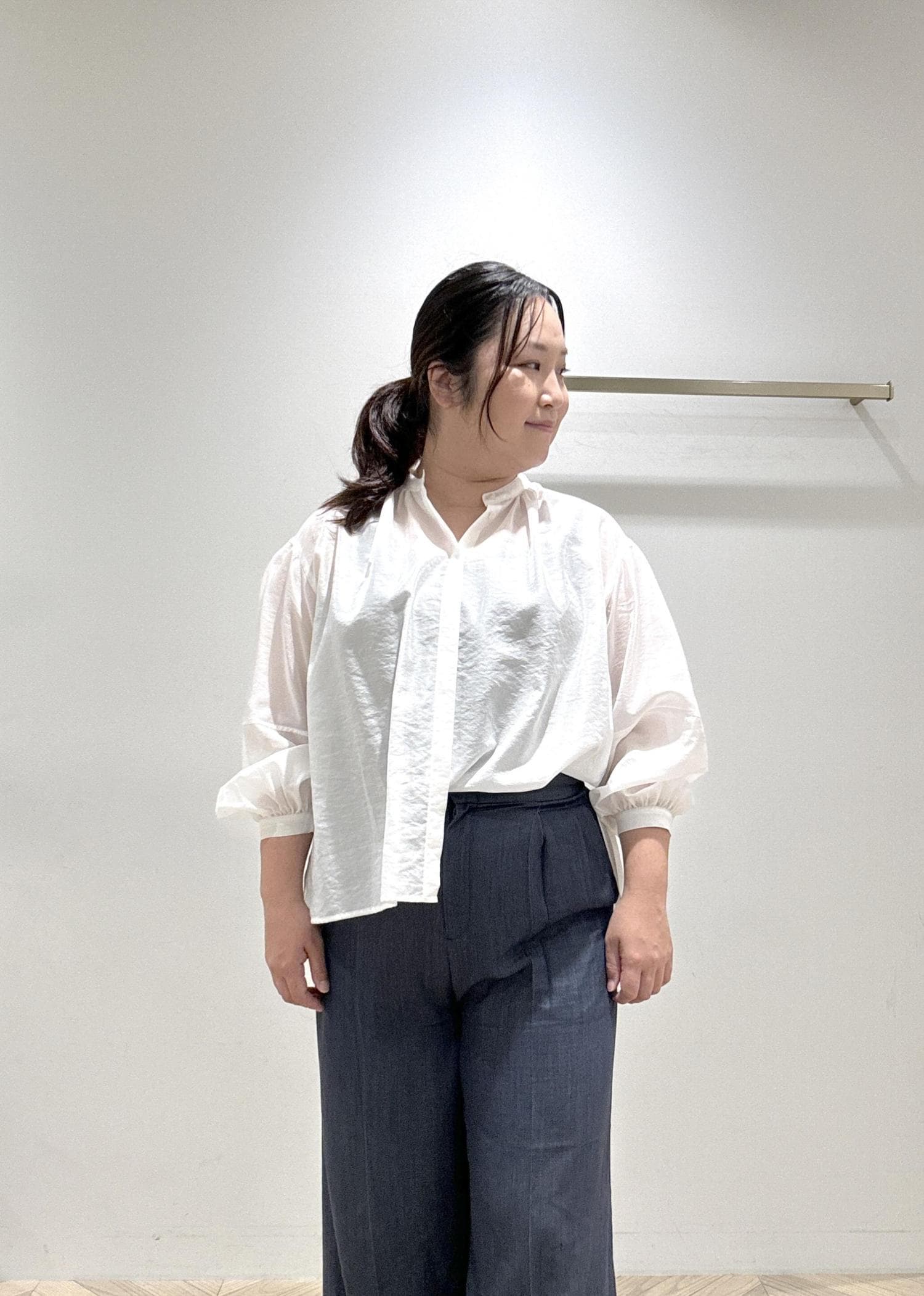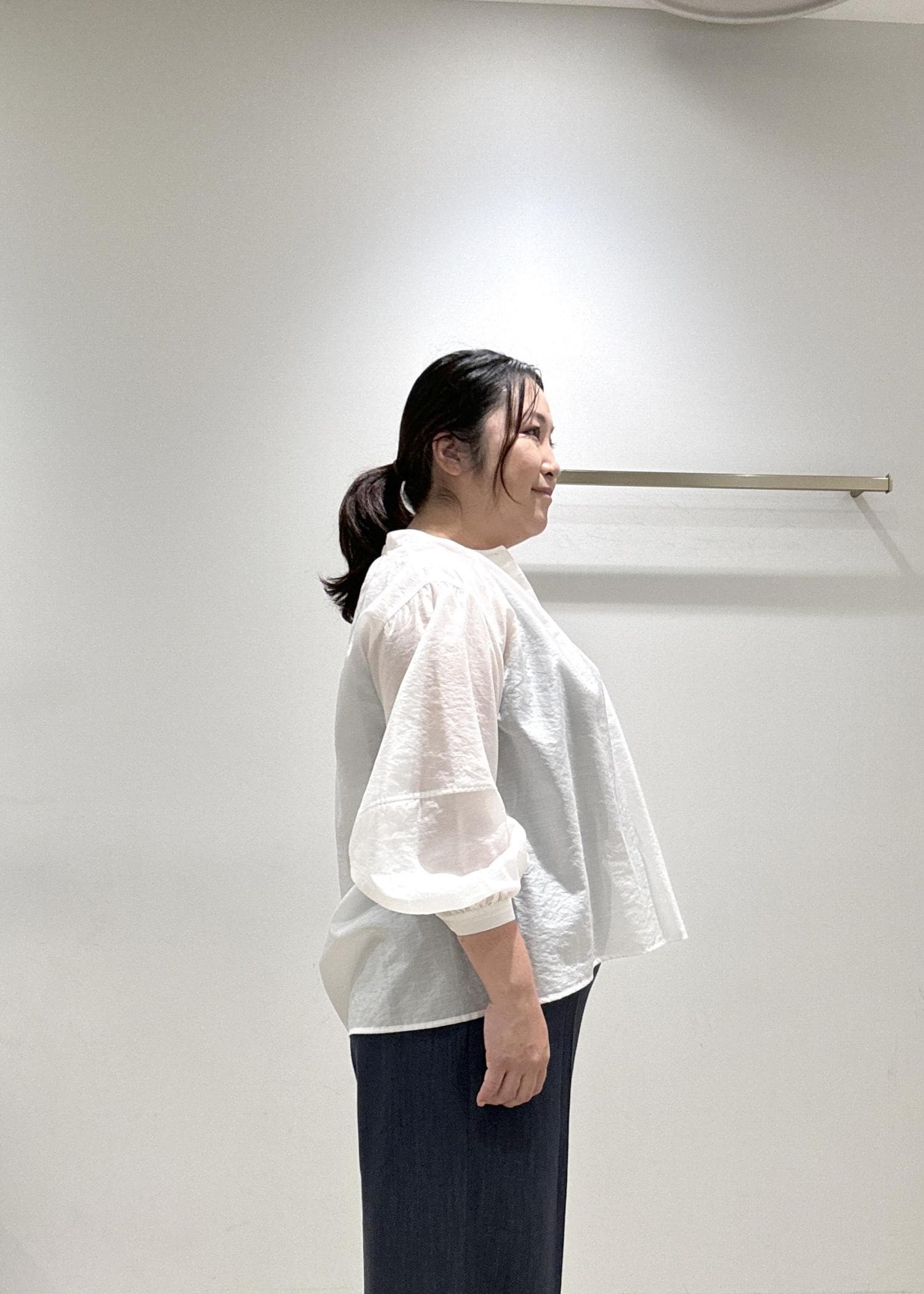 ややシアーな素材感で袖にボリュームもあり、カジュアルになり過ぎず柔らかな雰囲気で着用できます