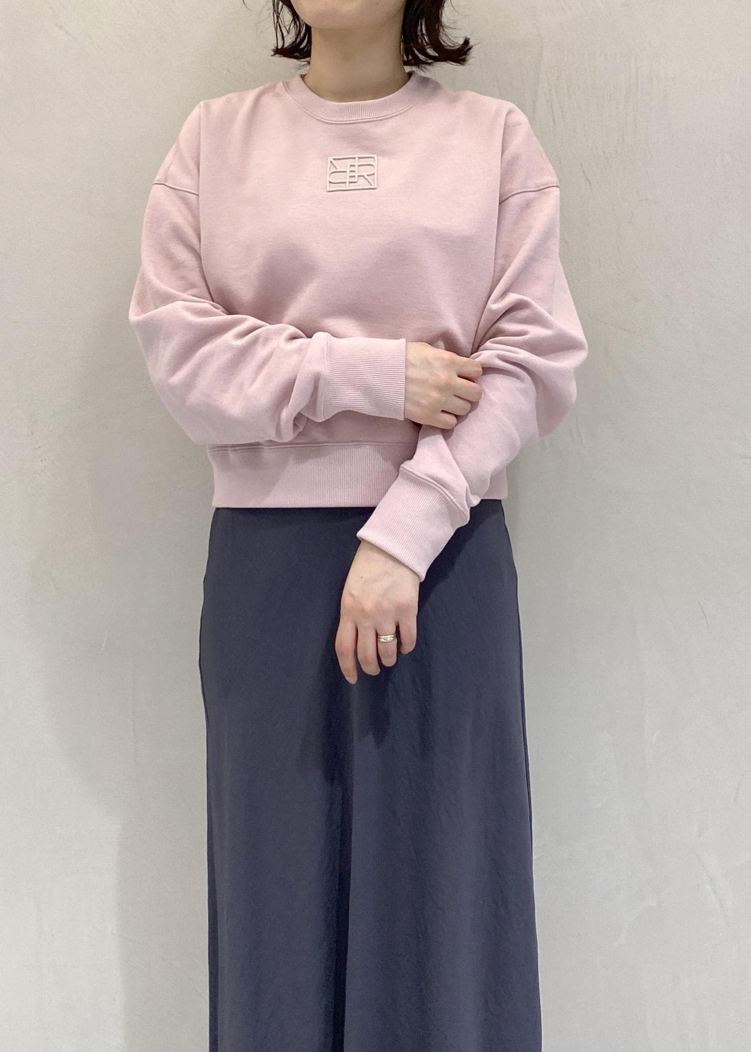 ROPÉアナグラム刺繍スウェットプルオーバー/イージーケアピンク系 / F¥18,700レビュー首元や身頃はすっきりしつつ、お袖が長めの程よいリラックス感のあるスウェットです。