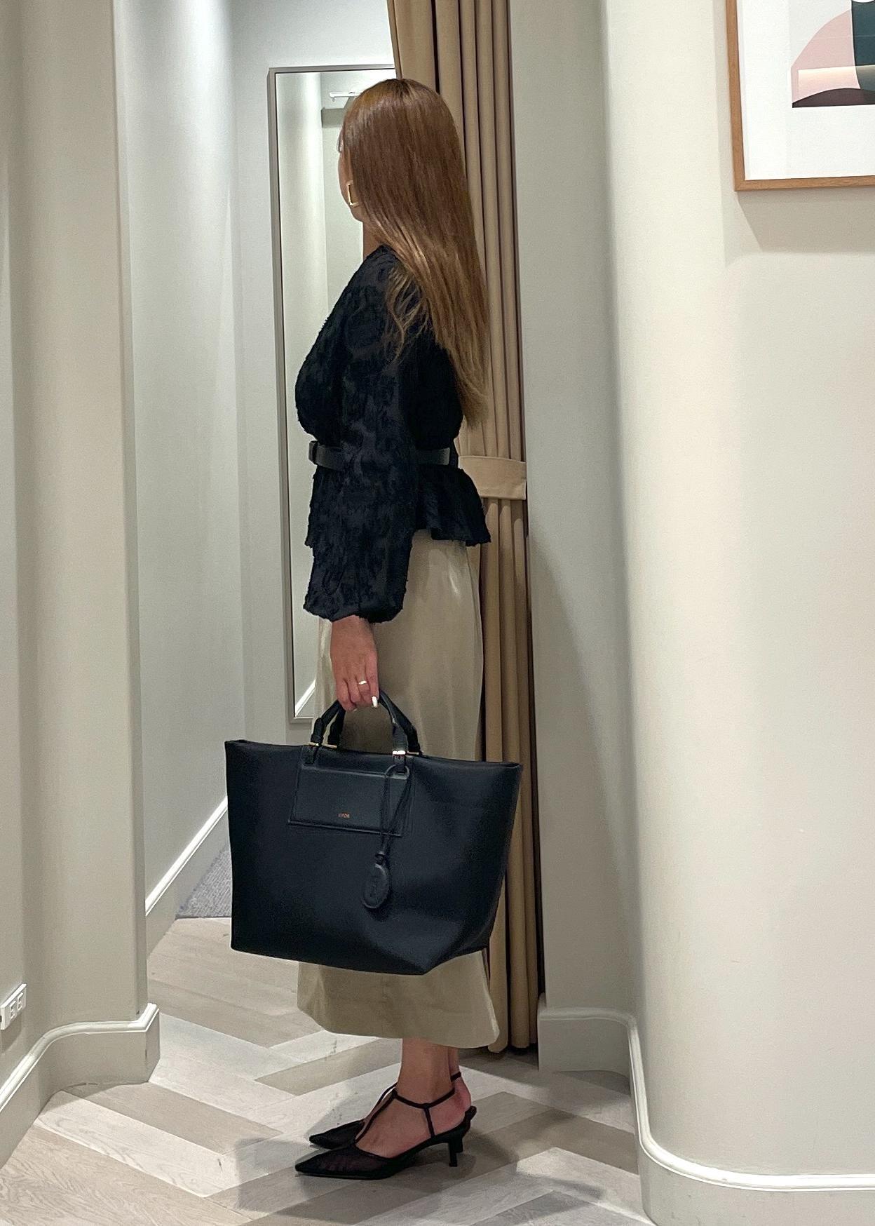 A4書類、PCが入って、更にお弁当や水筒などを入れても、革小物、携帯電話、化粧ポーチ、携帯用扇風機など、持って行きたいものが全て入るような、