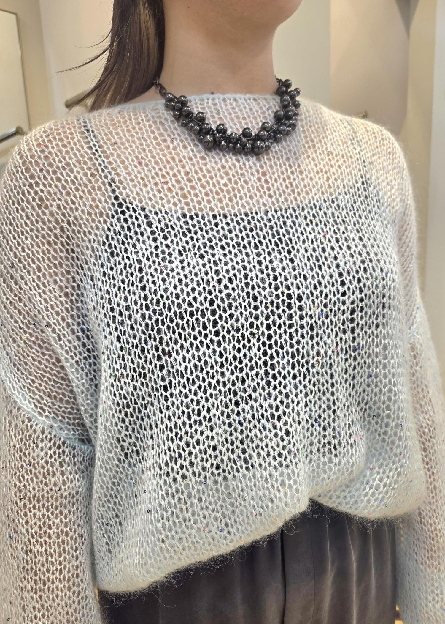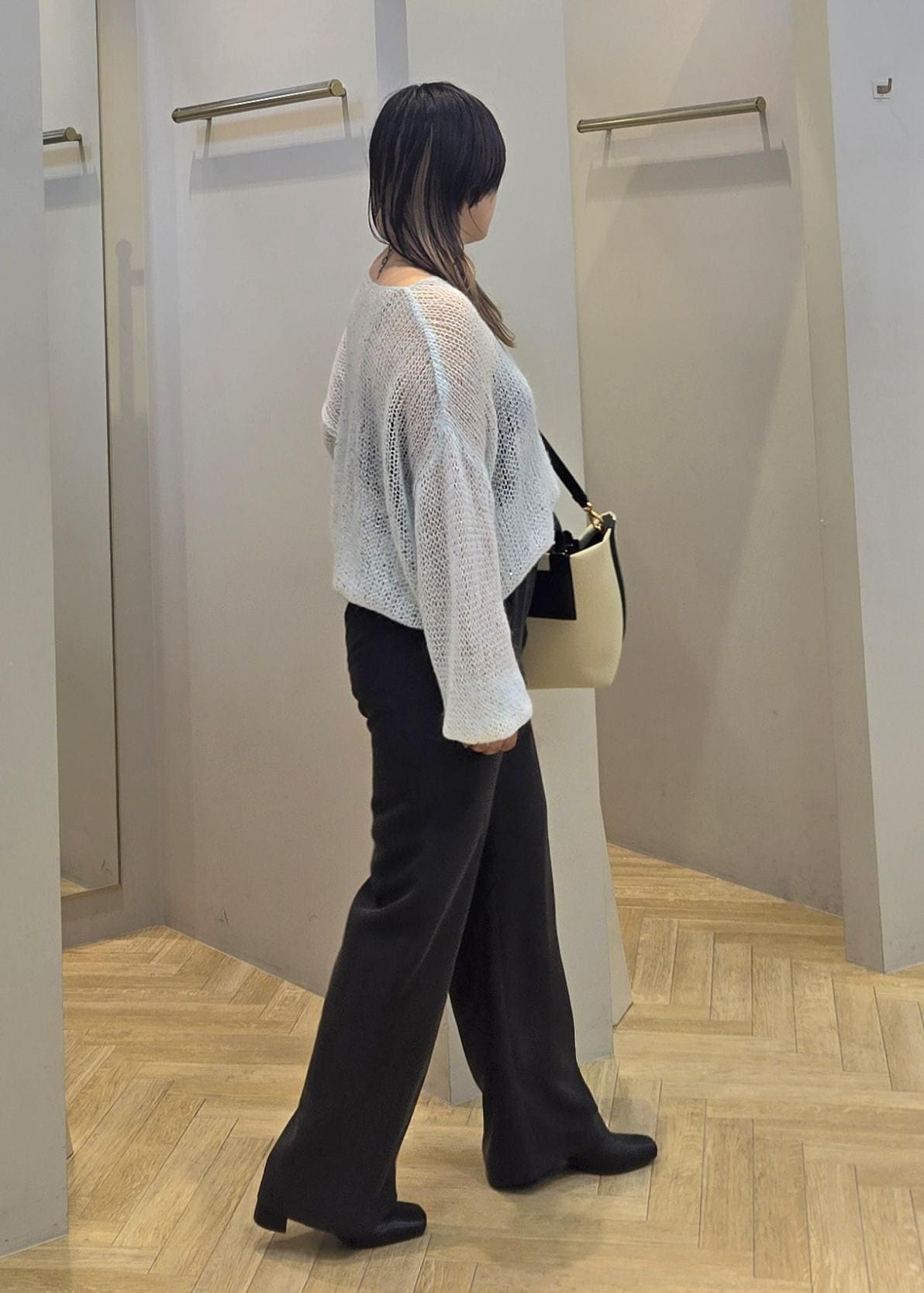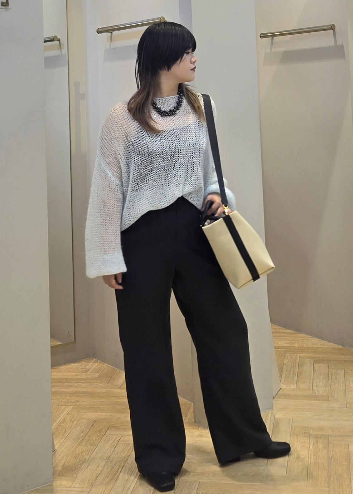 ざっくり編みでモヘアのフアフア感が可愛らしい印象に見せてくれます。