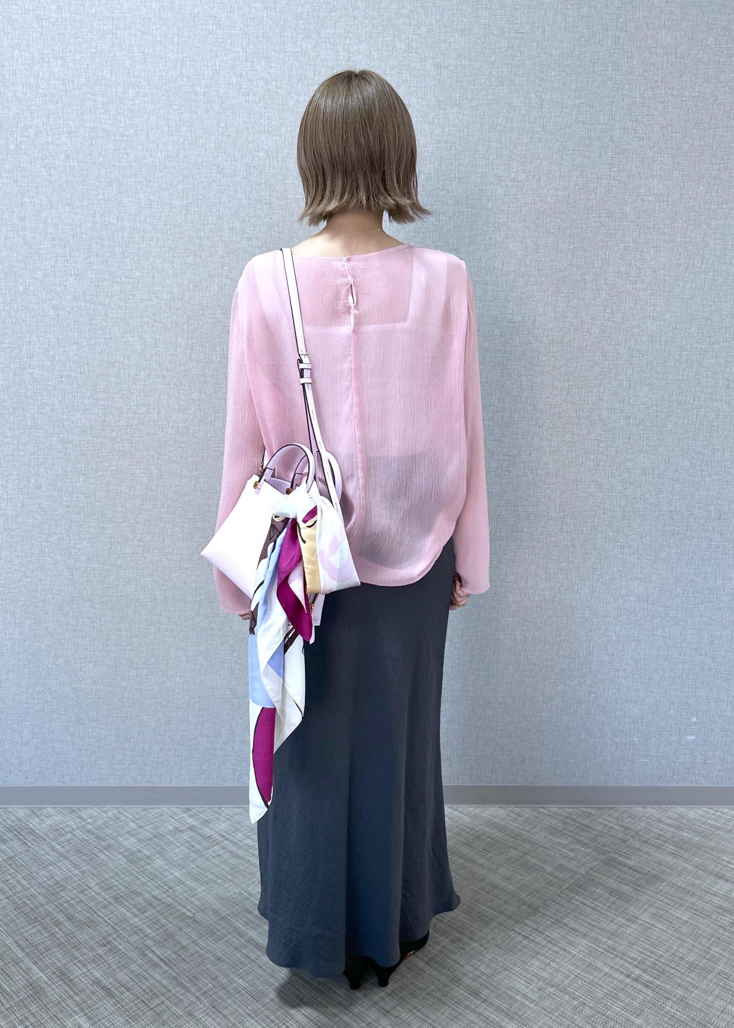 ROPÉ【洗える・前後2WAY】楊柳プルオーバー シアーブラウス【WEB・一部店舗限定】ピンク / F¥17,600レビュー肩はジャストですが、袖と裾が少し長めになったデザインですので上下でゆるっと着こなすのが私のおすすめです。