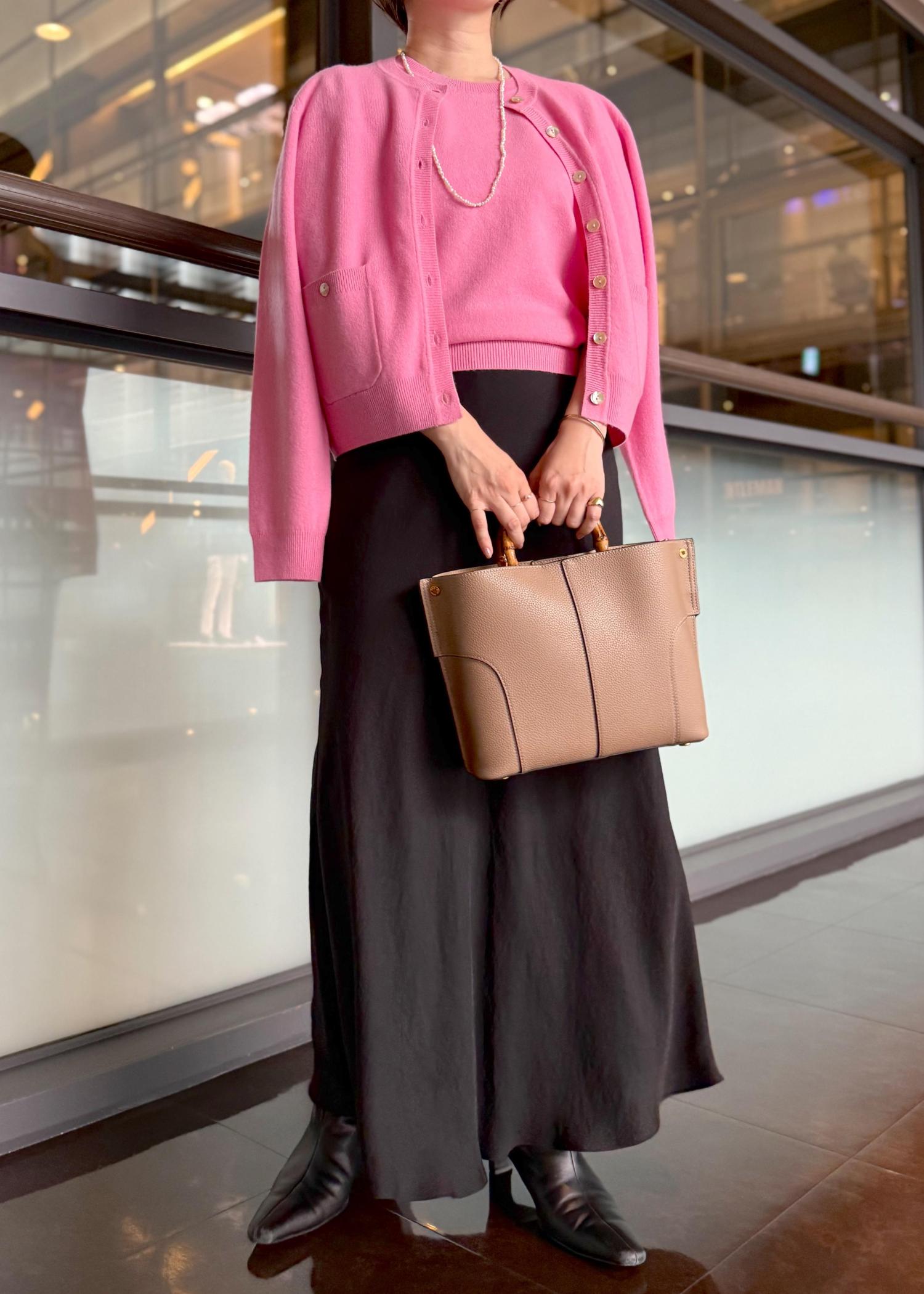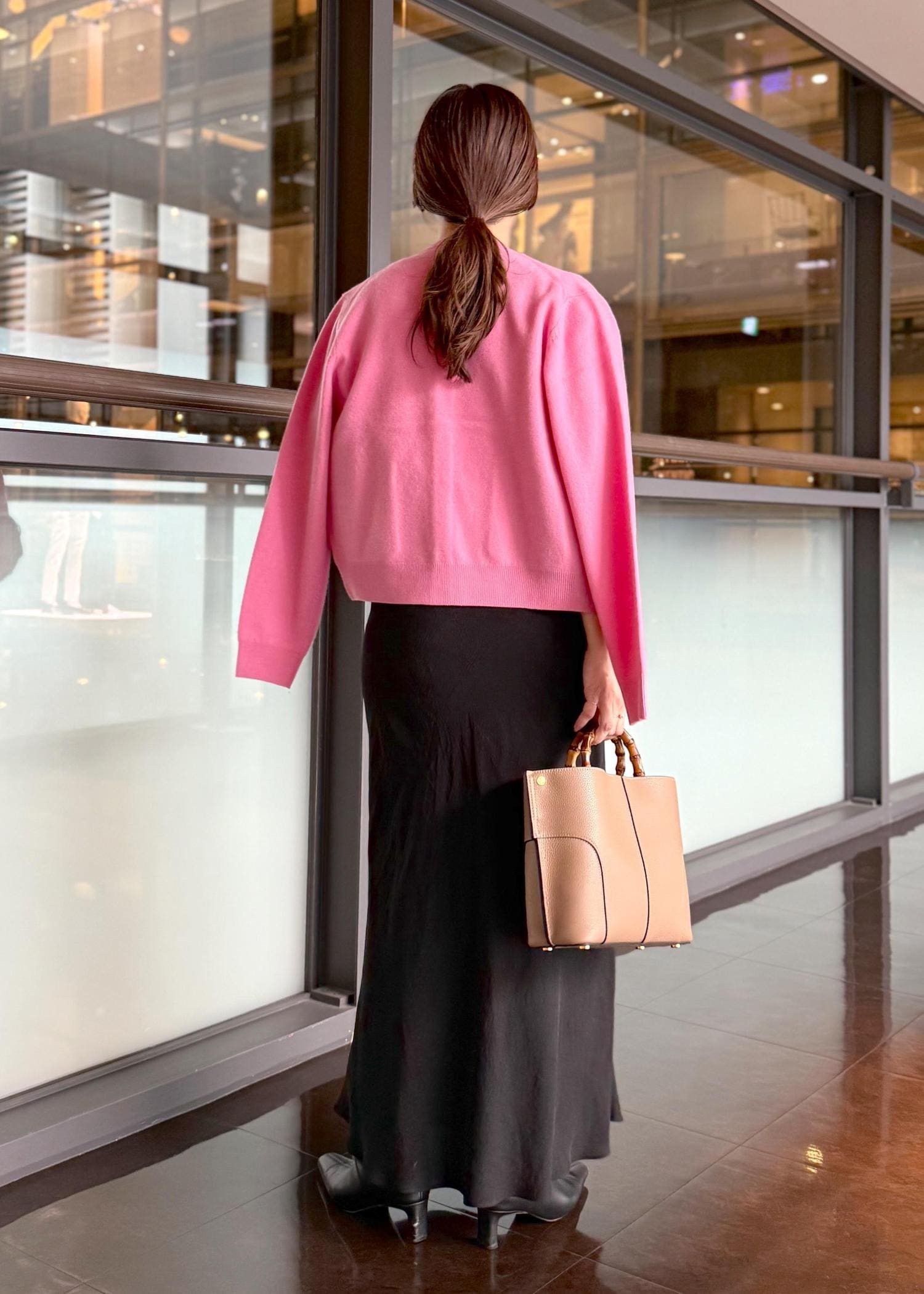 鮮やかなピンクのニットを主役にした大人フェミニンコーデ♪