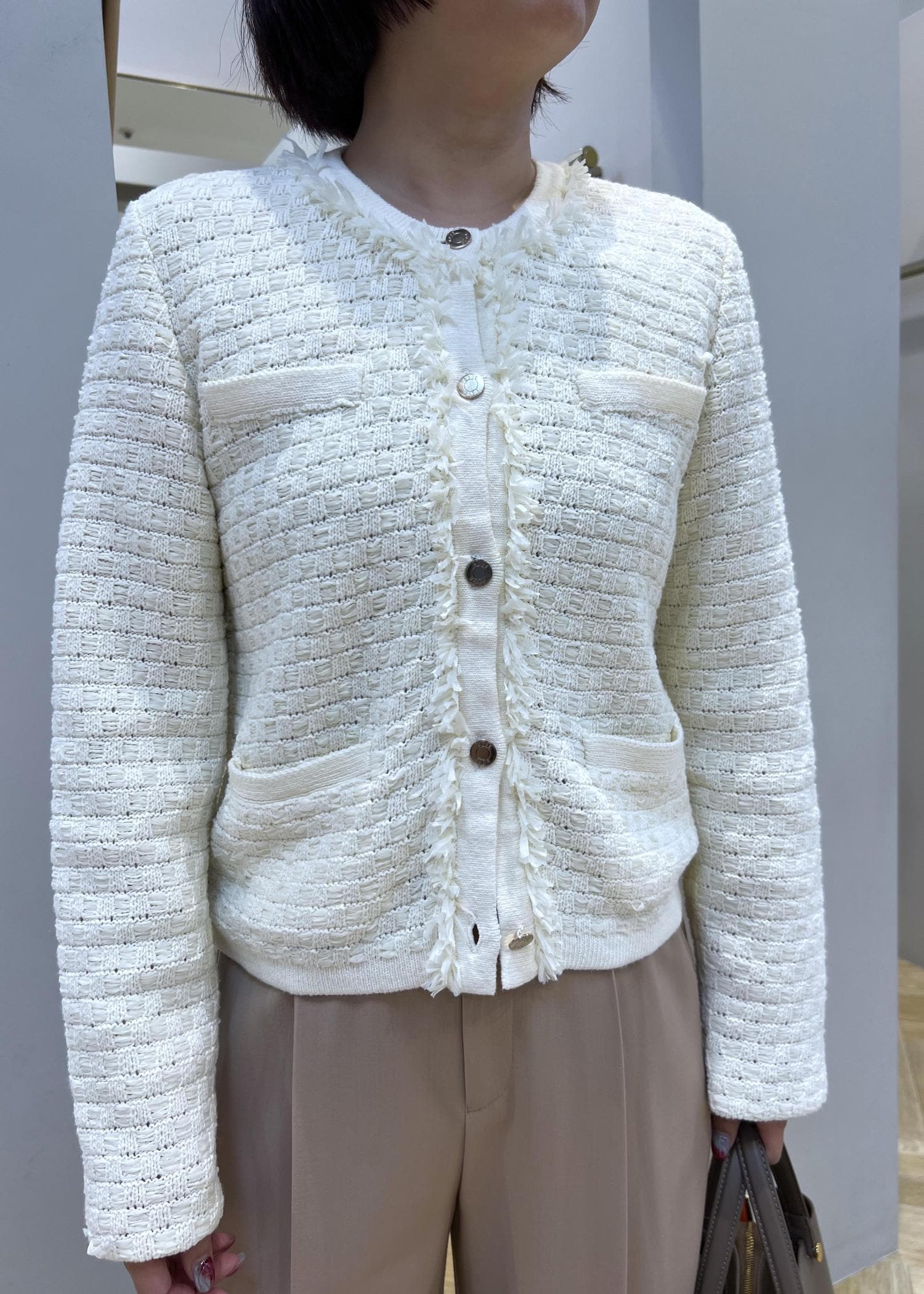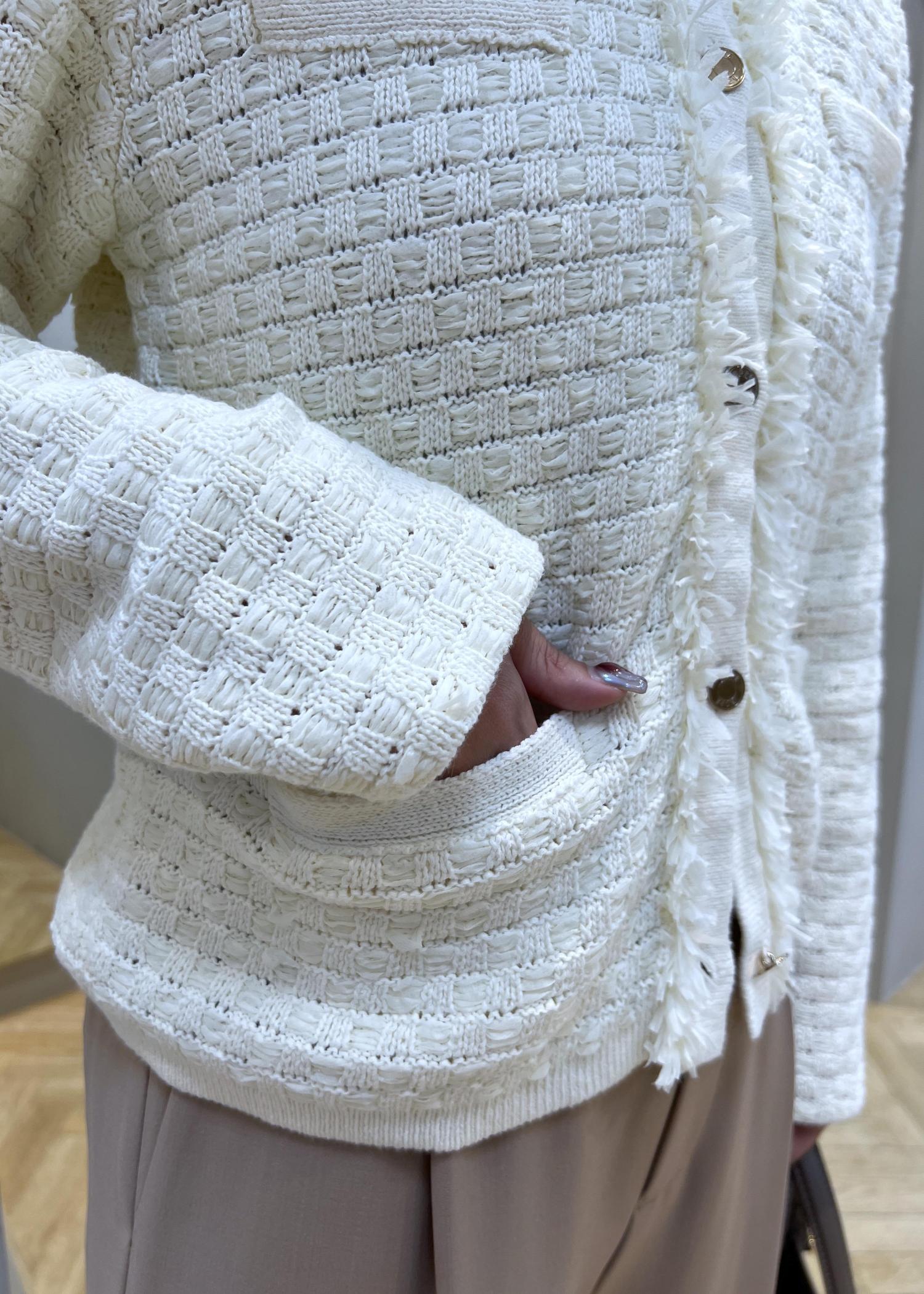 上品なニットフリンジジャケット。