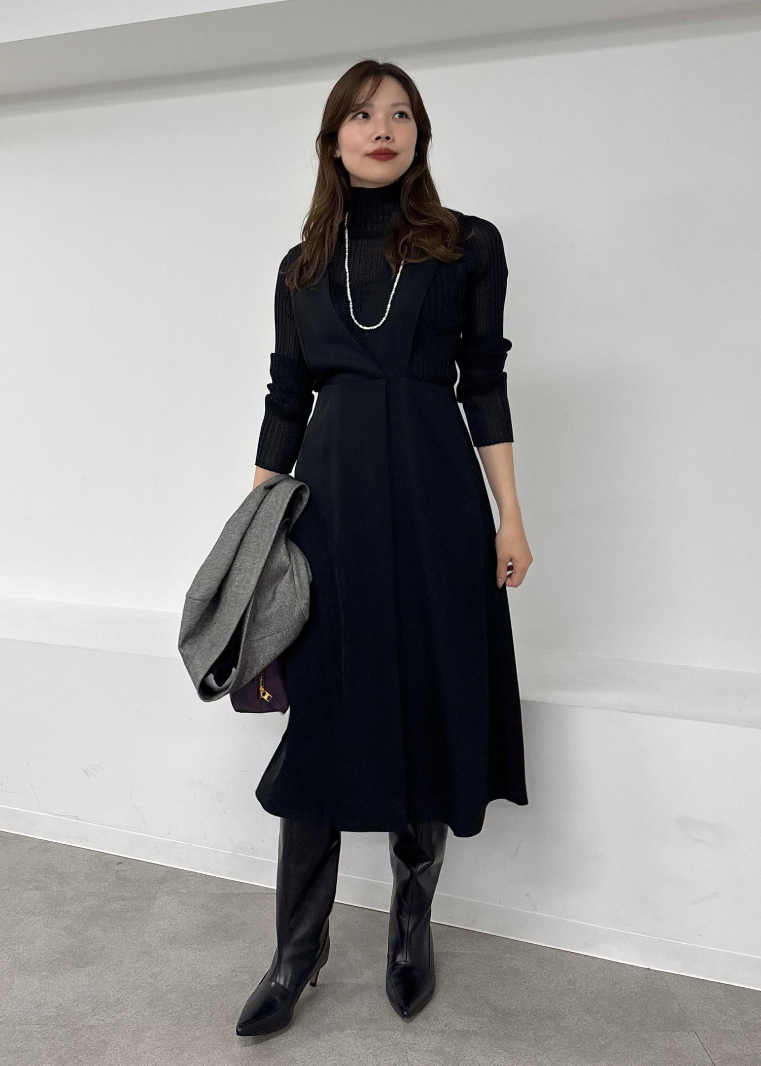 ROPÉトリアセテート ジャンパースカート/イージーケアブラック / 38¥41,800レビューウエスト位置が高めのシルエットが綺麗なデザインです。つるっとした表面感なのできれいめにもカジュアルにも合わせるアイテムで印象を変えられます。