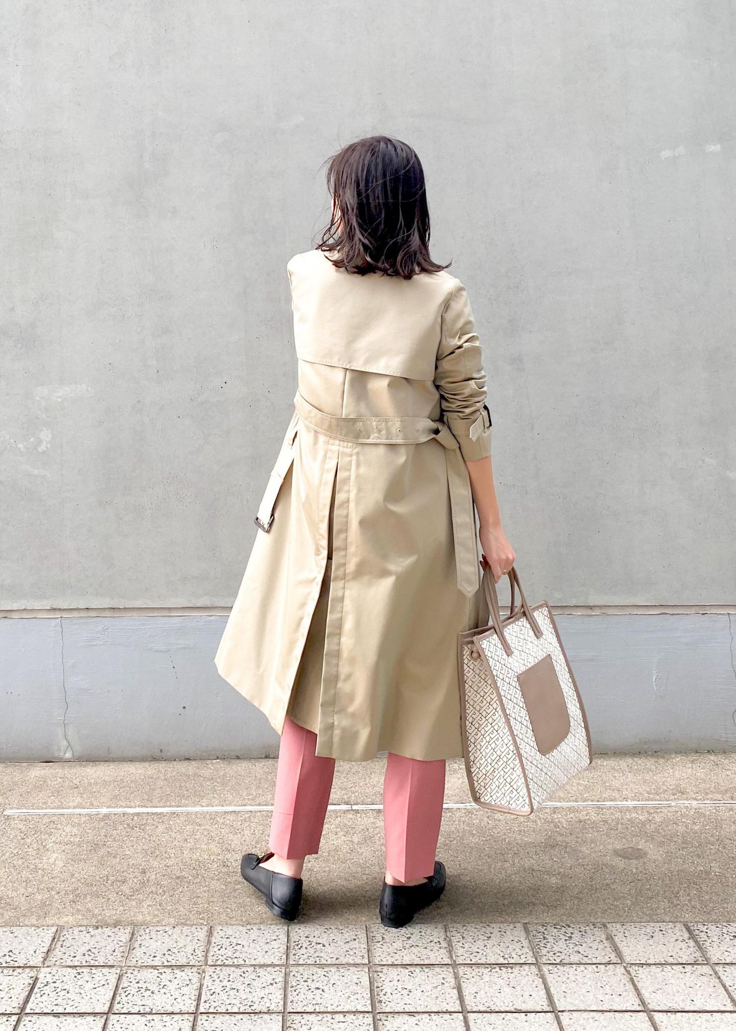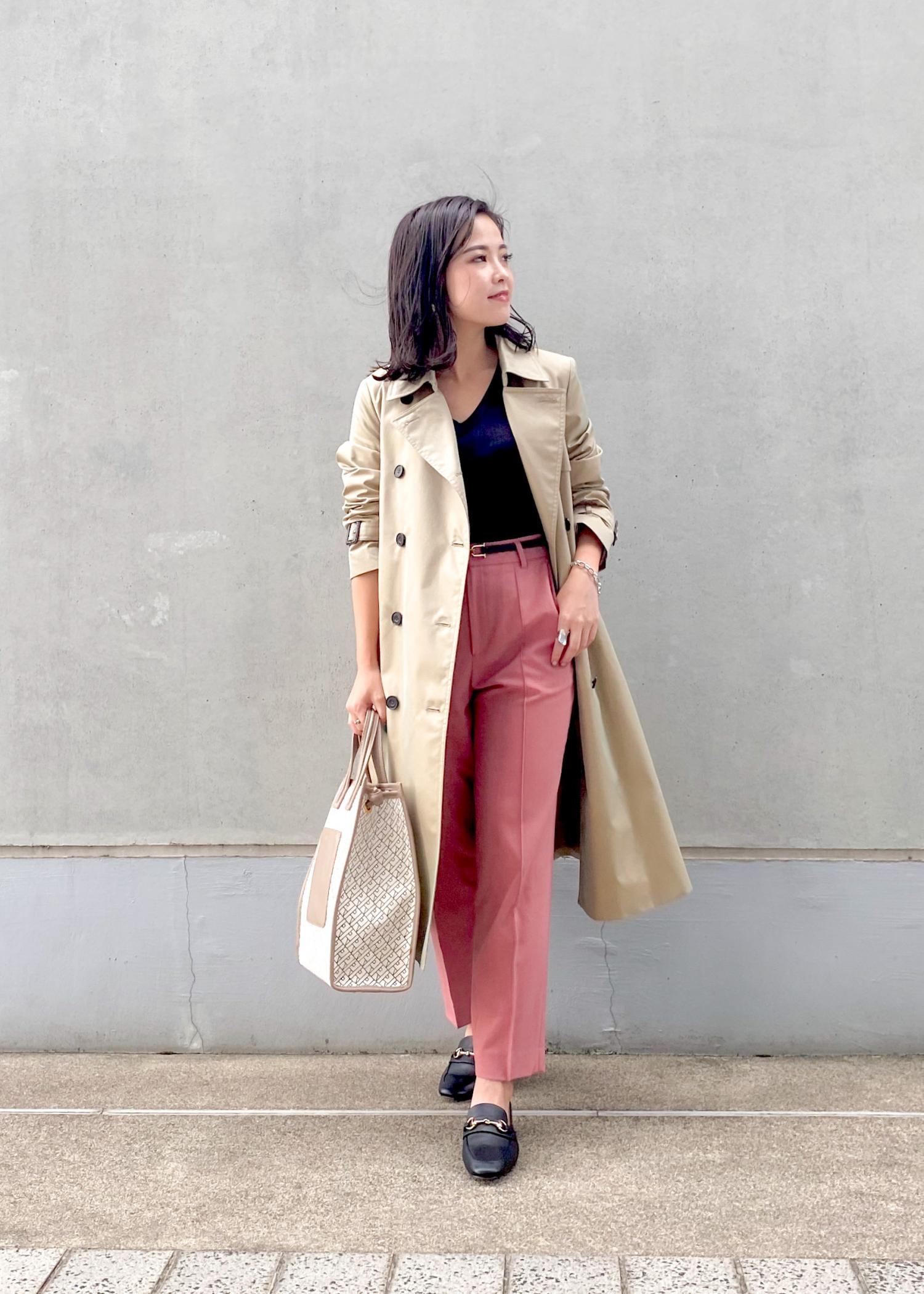 オンオフ共に着用出来るトレンチコートは普段はもちろん、スーツやワンピースに合わせてもok