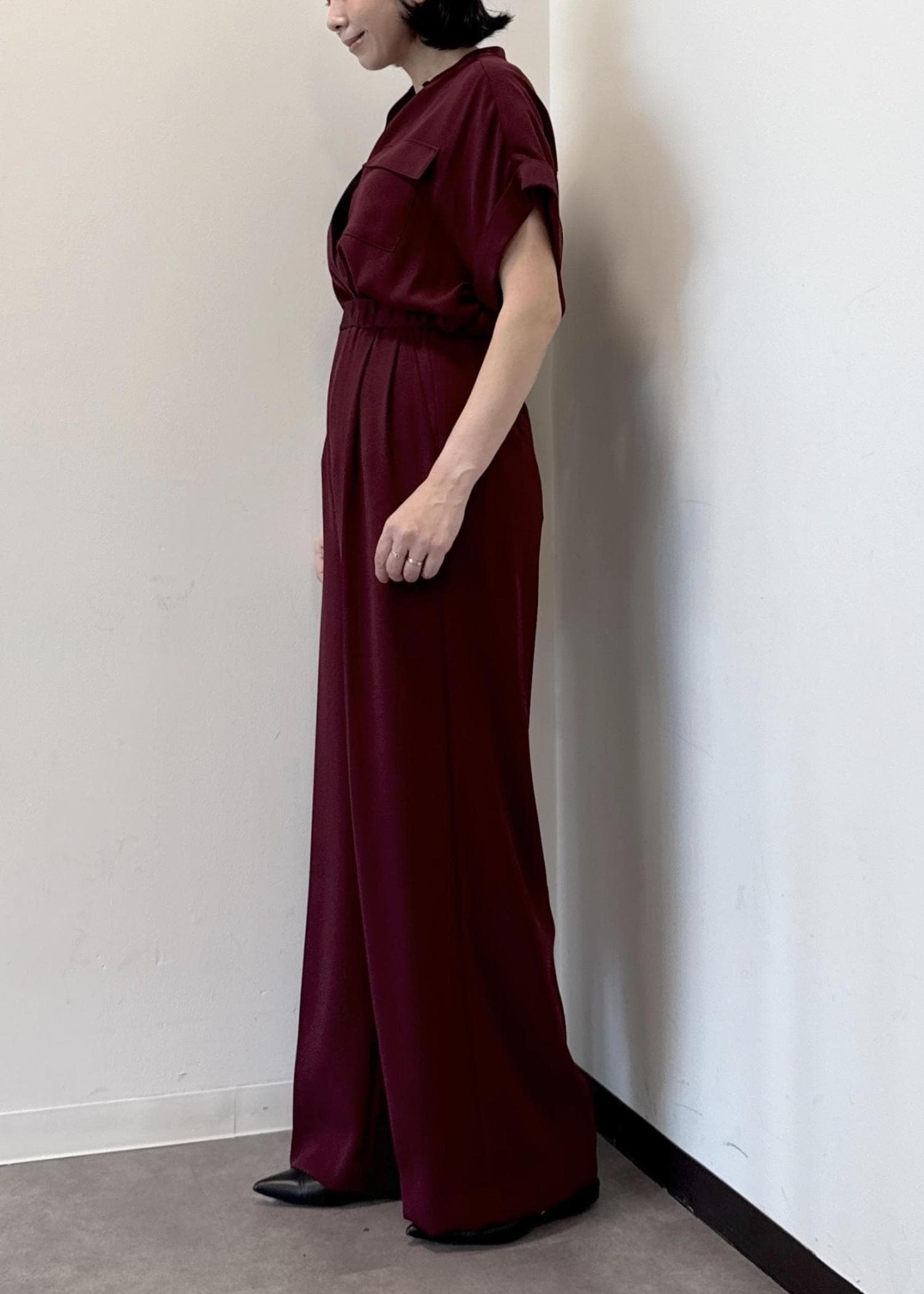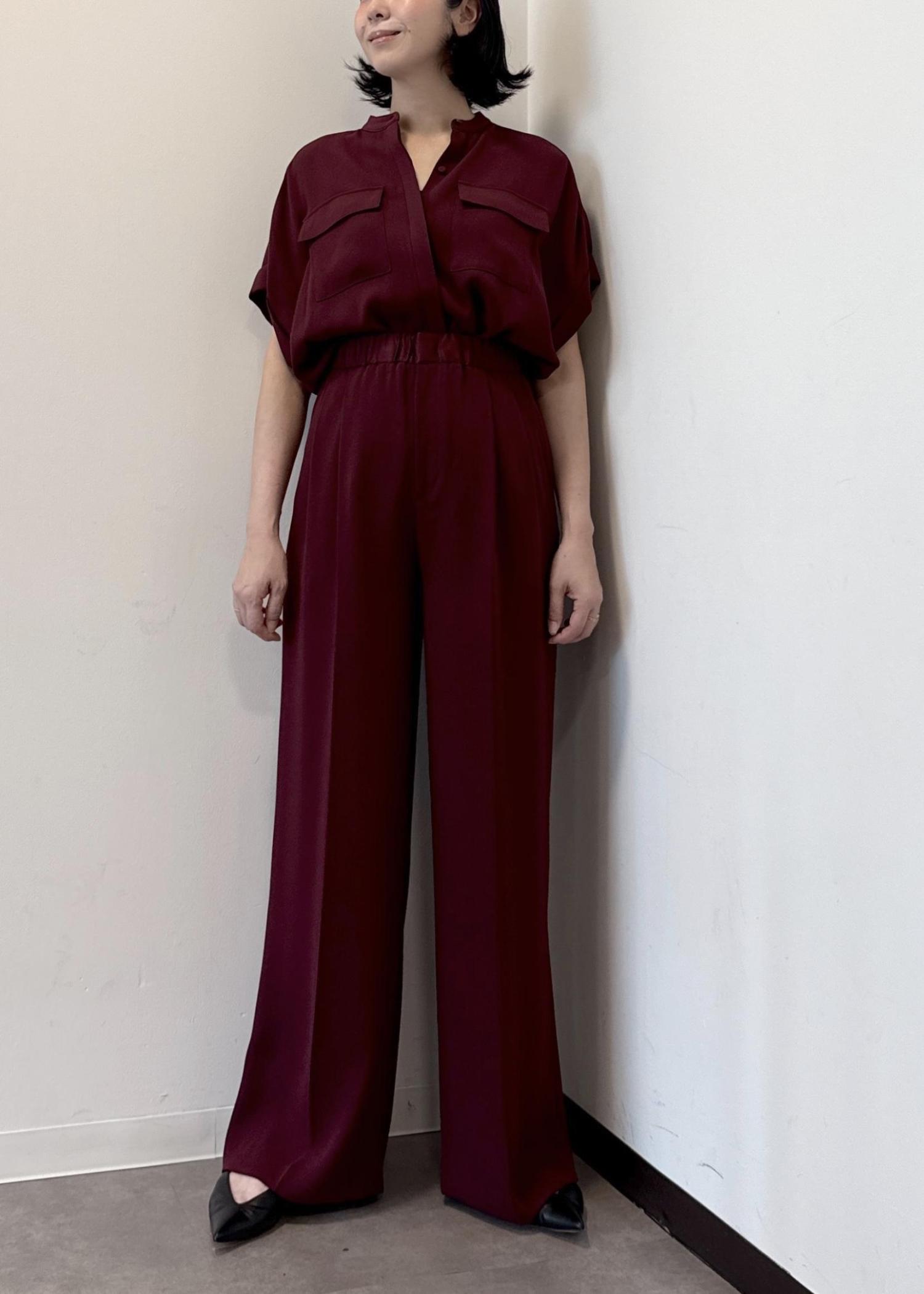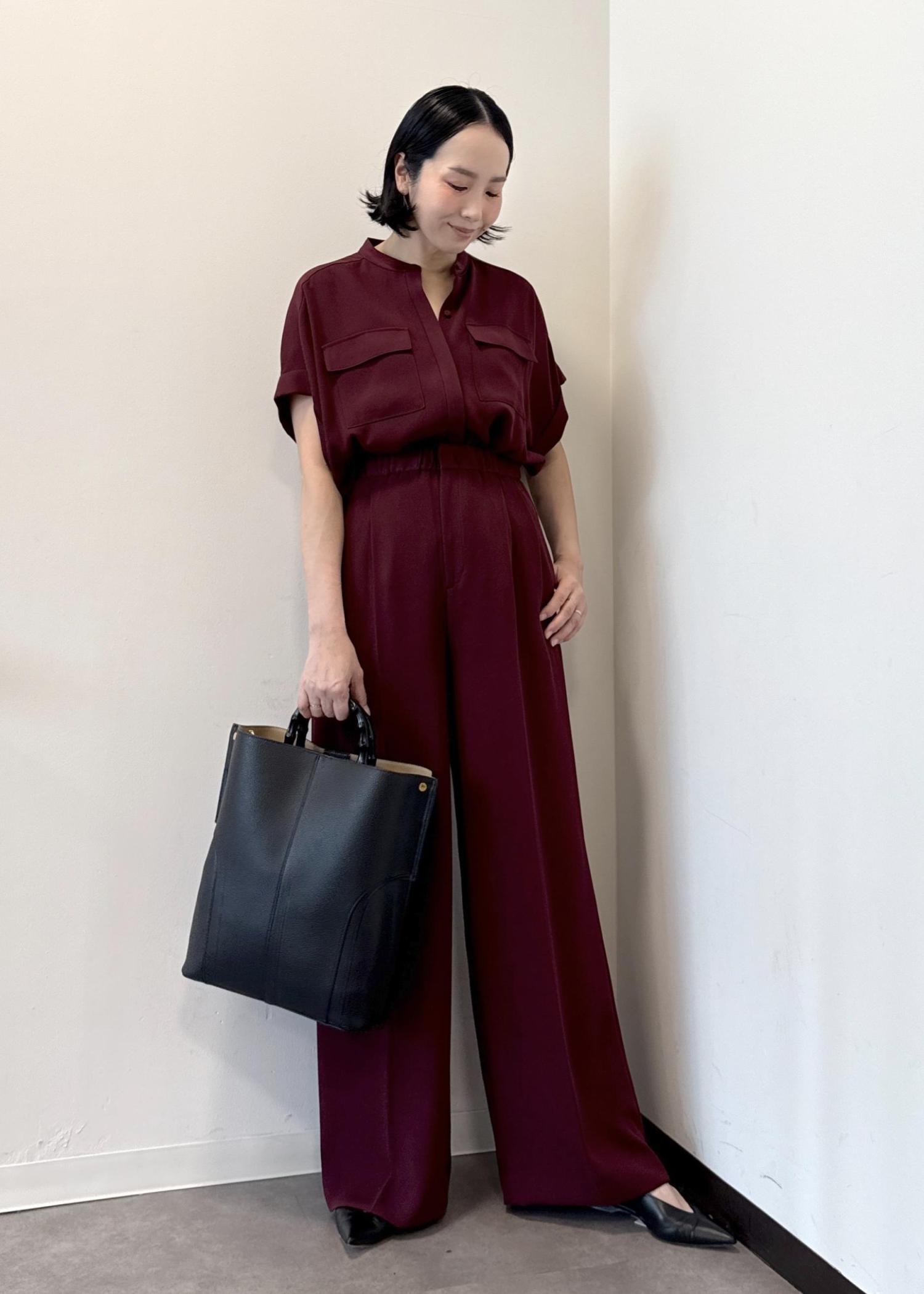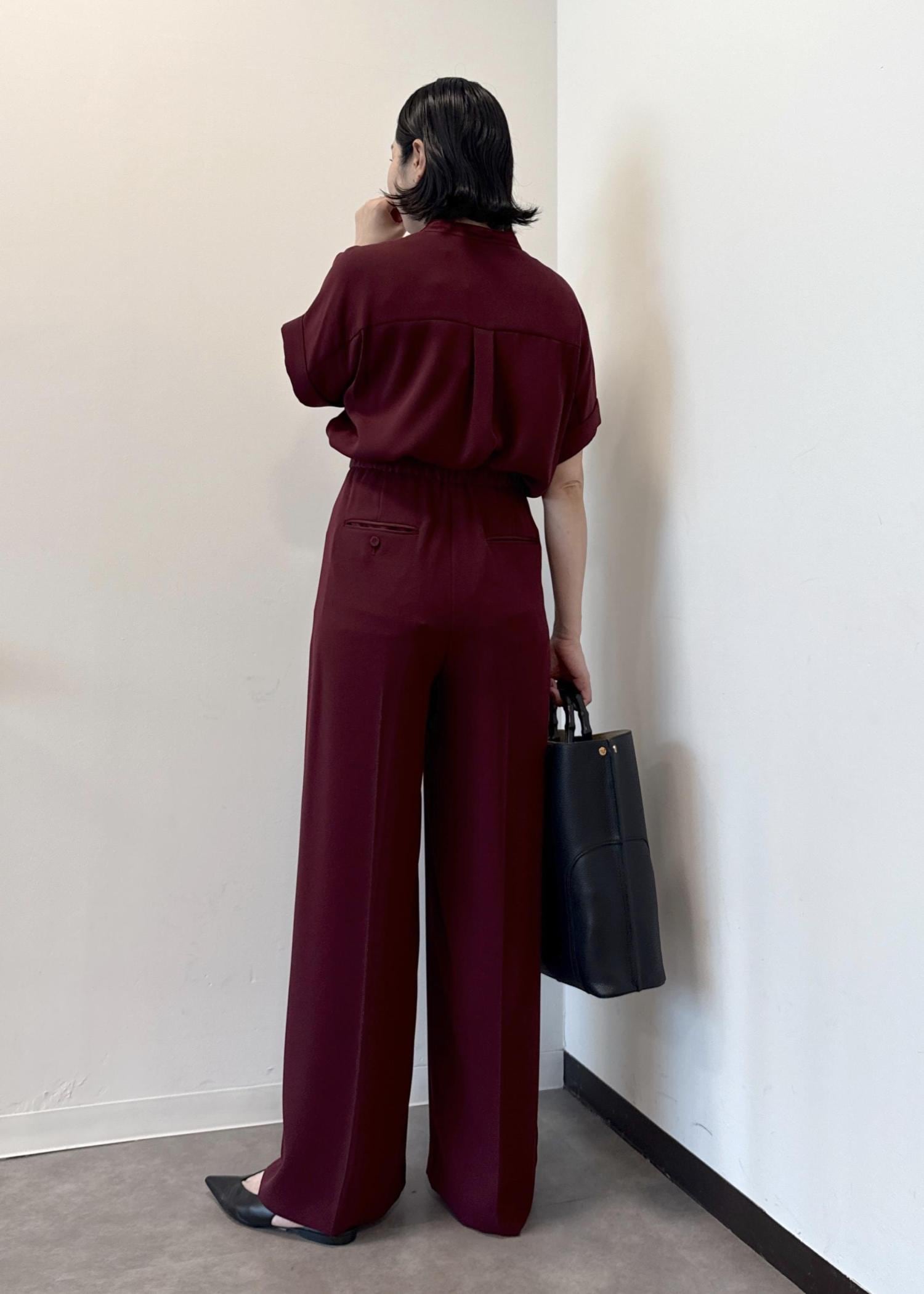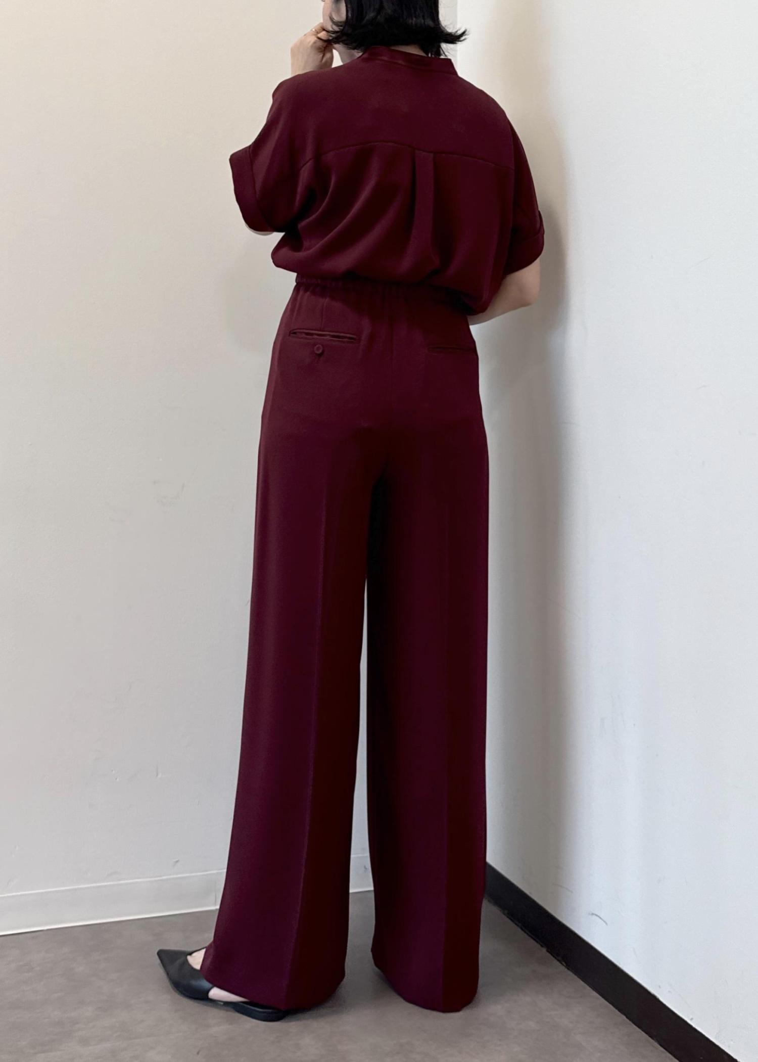 ROPÉ【洗える・カセット服】ライトトリアセイージーワイドパンツ/お仕事・通勤・セットアップ対応ワイン / 38¥25,300レビュー162㎝ 38サイズ着用