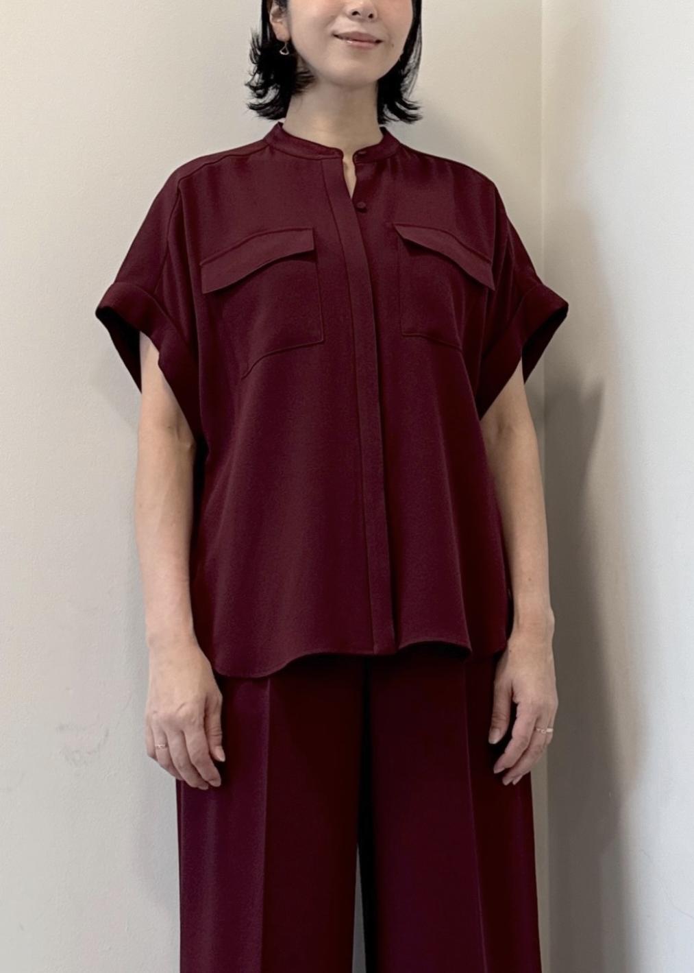 ROPÉ【洗える・カセット服】バックサテンフラップブラウス/お仕事・通勤・セットアップ対応【ドラマ着用】ワイン / F¥25,300レビュー162㎝ Fサイズ着用
