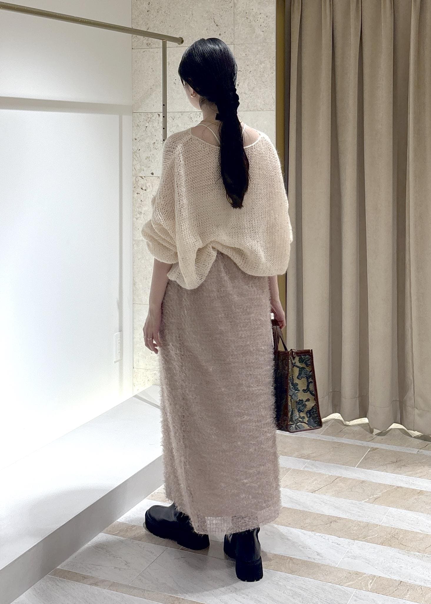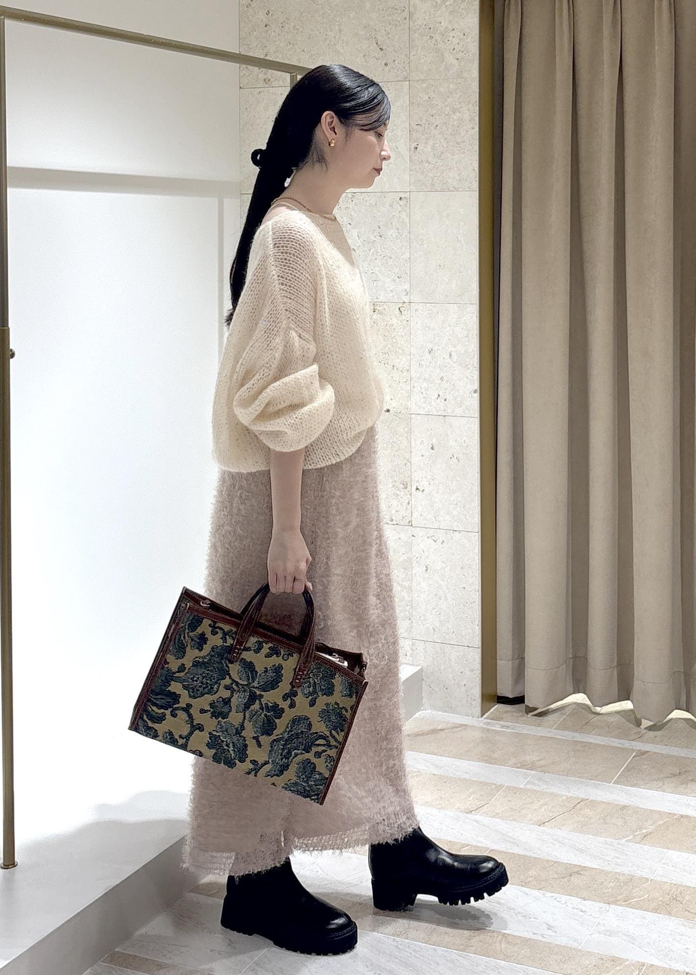 REALMのジャガードスカートと、サロンのモヘアニットで先取りコーデ!
